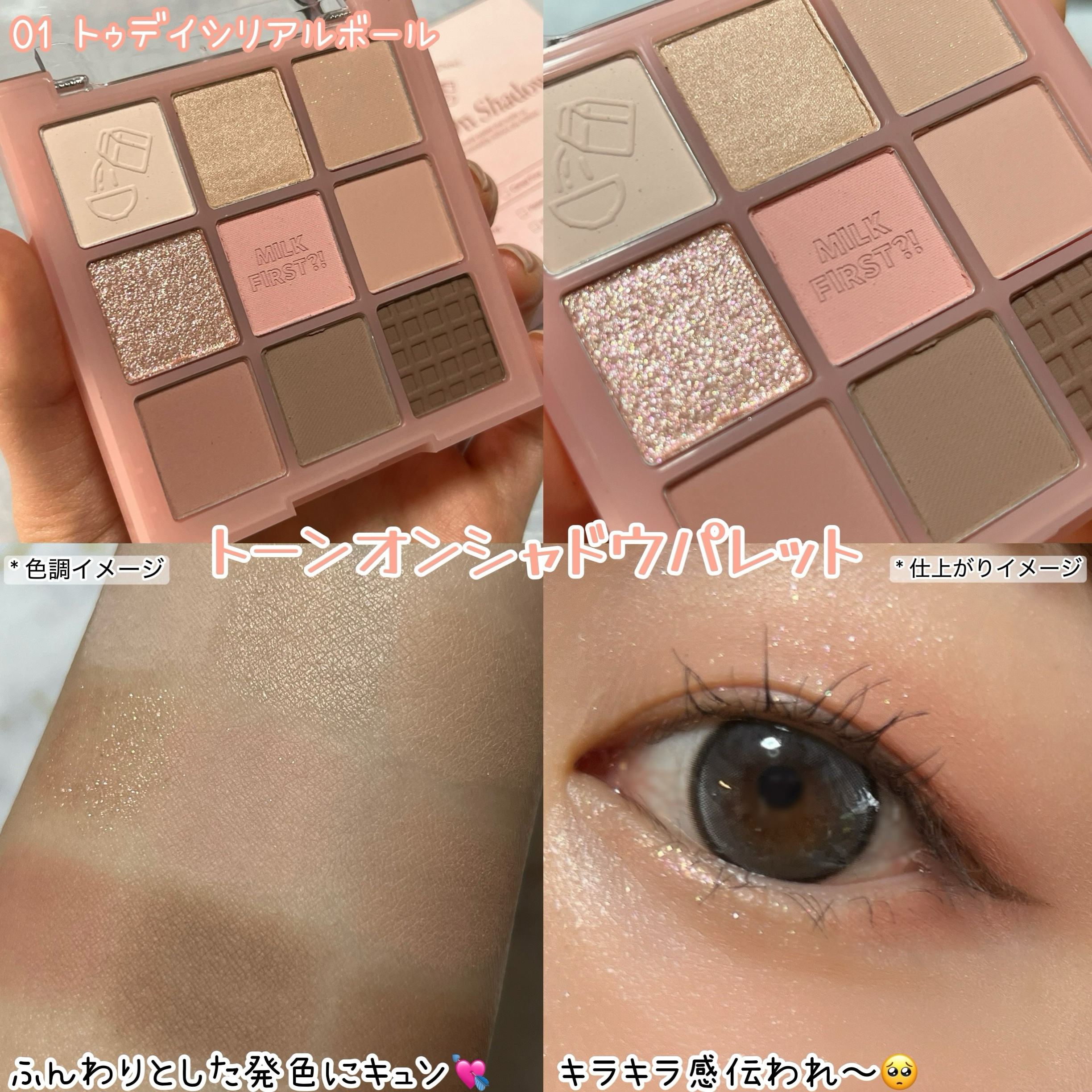 MilkTouchトーンオンシャドウパレット02ワンモアピンクスプーン淡いピンクカラーが可愛いらしいトーンオンシャドウパレット💓ボウルいっぱいのミルクに色とりどりのシリアルをひとさじ。デイリー使いしやすいカラーパレットだそう。淡いですが可愛い...