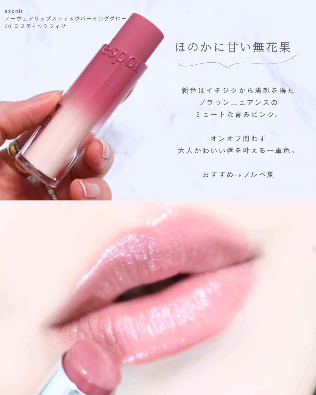 唇にしっかり定着してくれて、ほんと落ちにくい!!😳👏 食事をしても唇に血色感が残るので デートにもおすすめ🥰 しかも全色絶妙にかわいいカラー、、🤤❤️🔥 ブルベ夏のわたしは特に03,04がお気に入り!