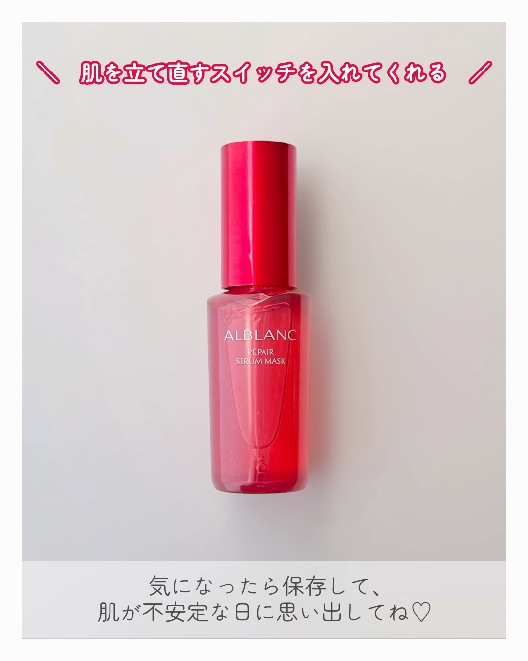 - 【医薬部外品】 リペア セラムマスクは、肌に絡みつくように密着。 有効成分で肌荒れを防ぎます。 また、アルブラン独自の美容成分(保湿)配合で乾燥を防止します。 角層の機能の働きを助け、一滴でキメの整った健やかな肌に保ちます。
