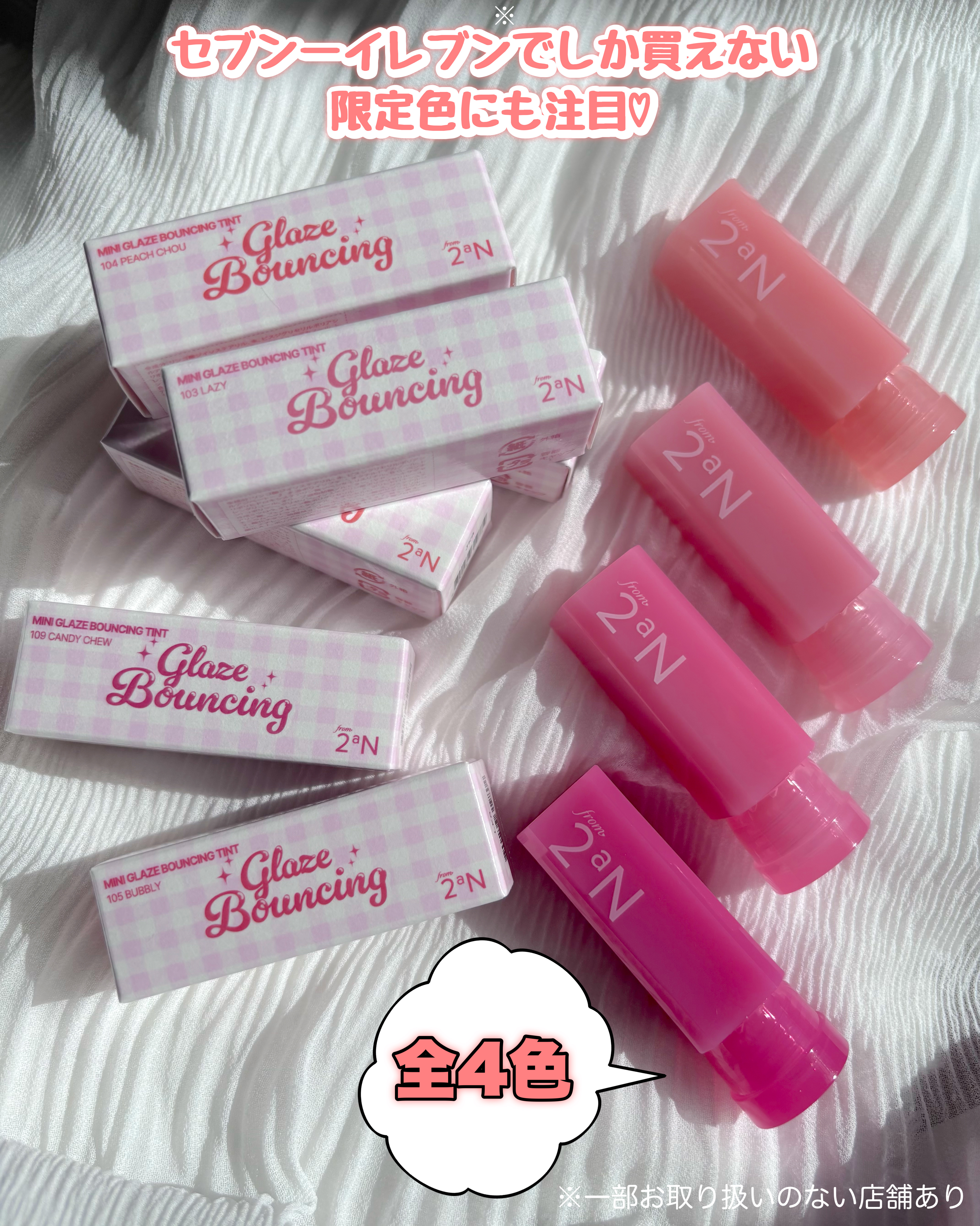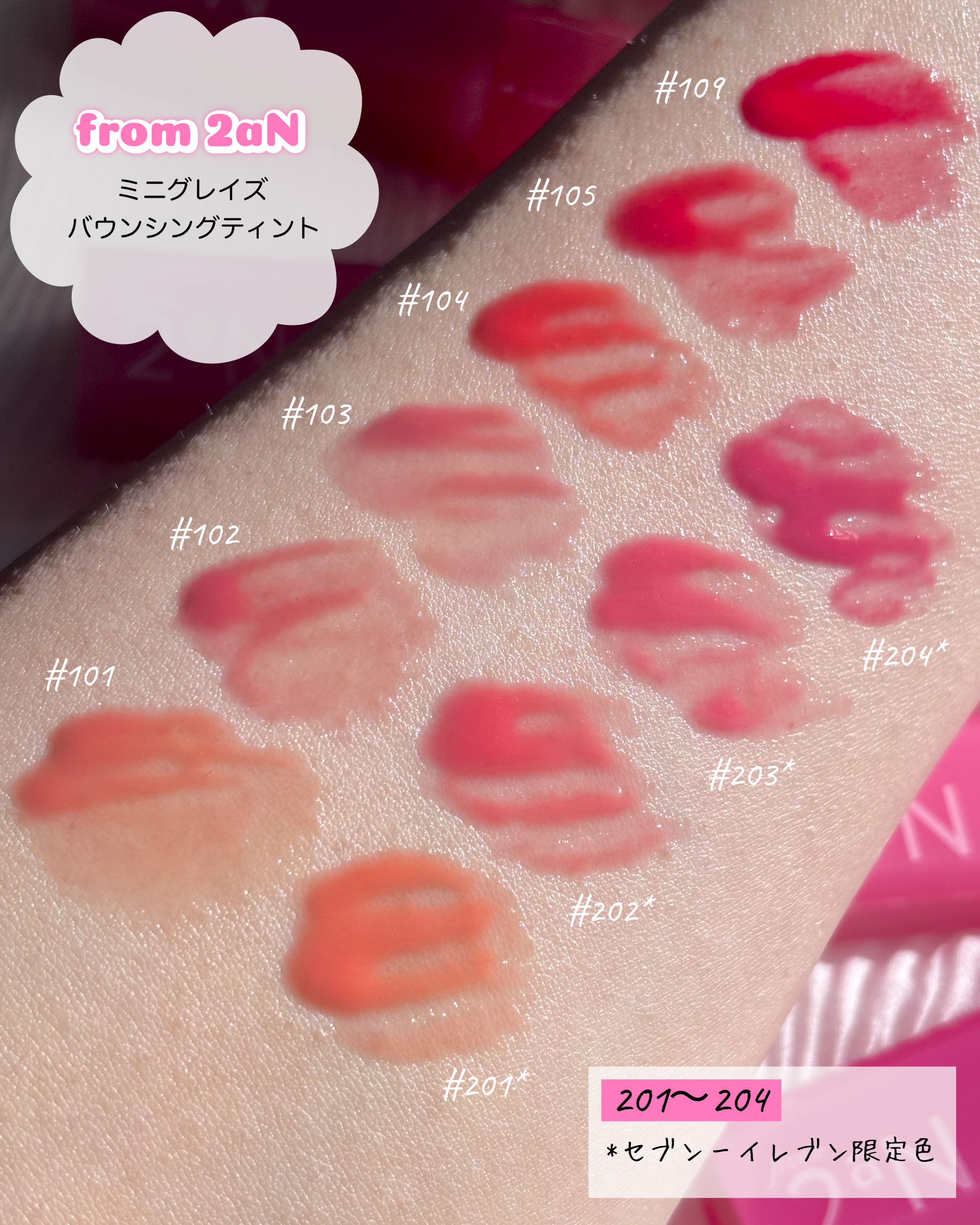 #PR2aN(@2an_official_jp)ミニグレイズバウンシングティント𑁍𓏸𓈒𓂃𓂃𓂃🕊セブンイレブン限定販売の2aNのミニコスメ👏今回はミニティントを紹介するよ!定番人気カラー6色にセブンイレブン限定カラー4色が加わった10色展開だよ...