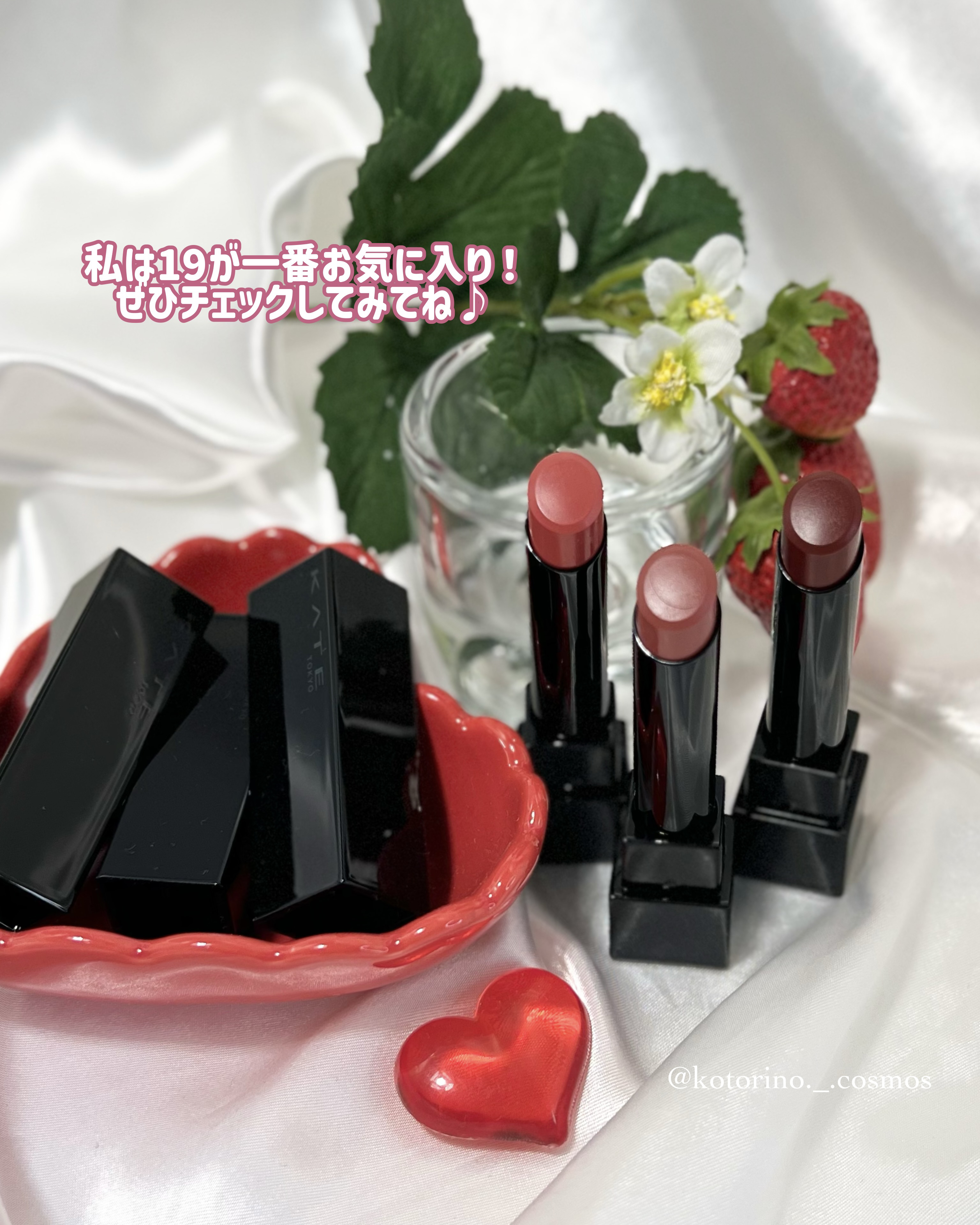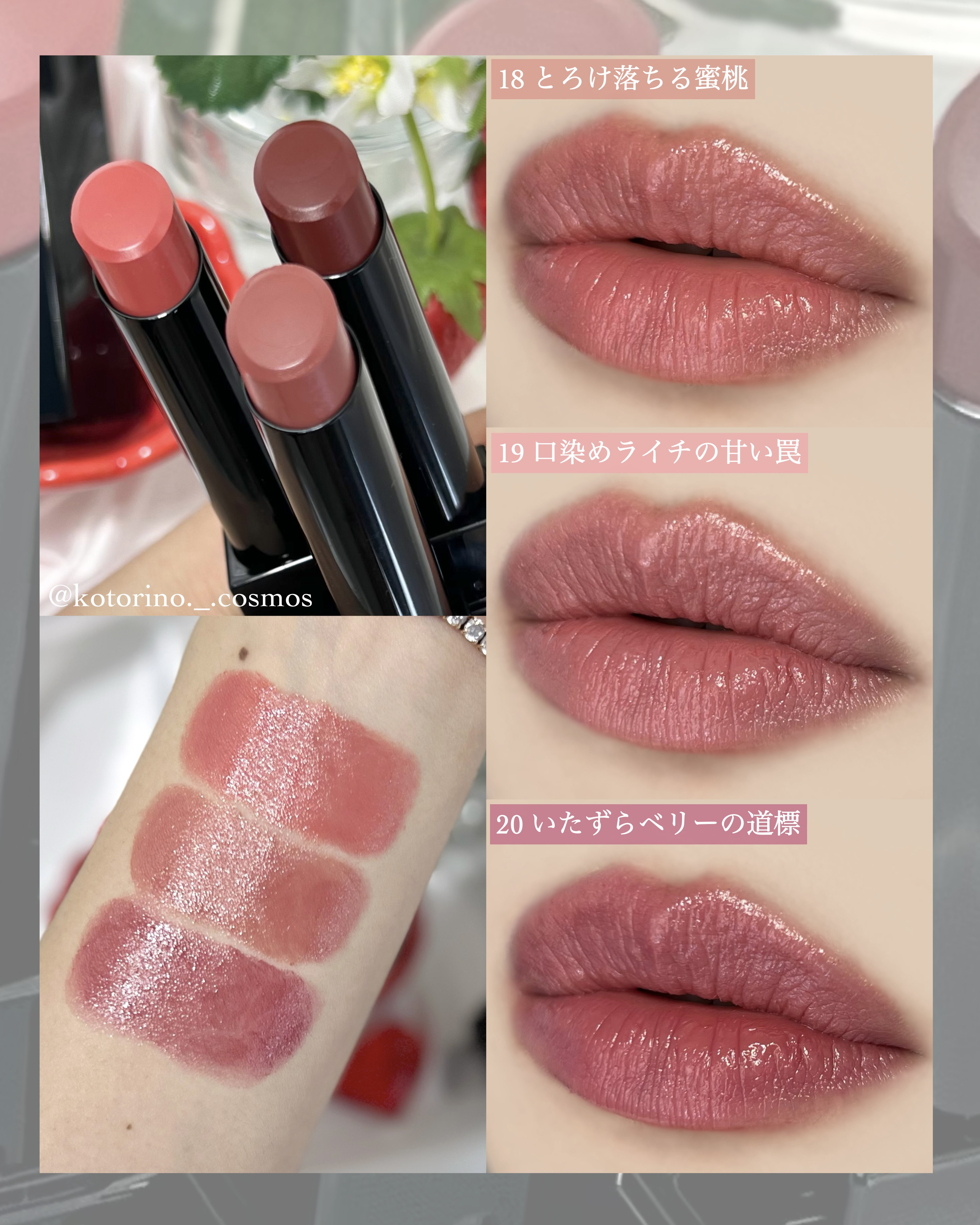 \🆕リプモン新色速報💄✨/みんな大好きリプモンから、春らしいカラーが登場🩷◼︎KATEリップモンスター18とろけ落ちる蜜桃19口染めライチの甘い罠20いたずらベリーの道標¥1,540税込新色は、甘い果実のようなニュアンスピンク系カラー🍓・18...