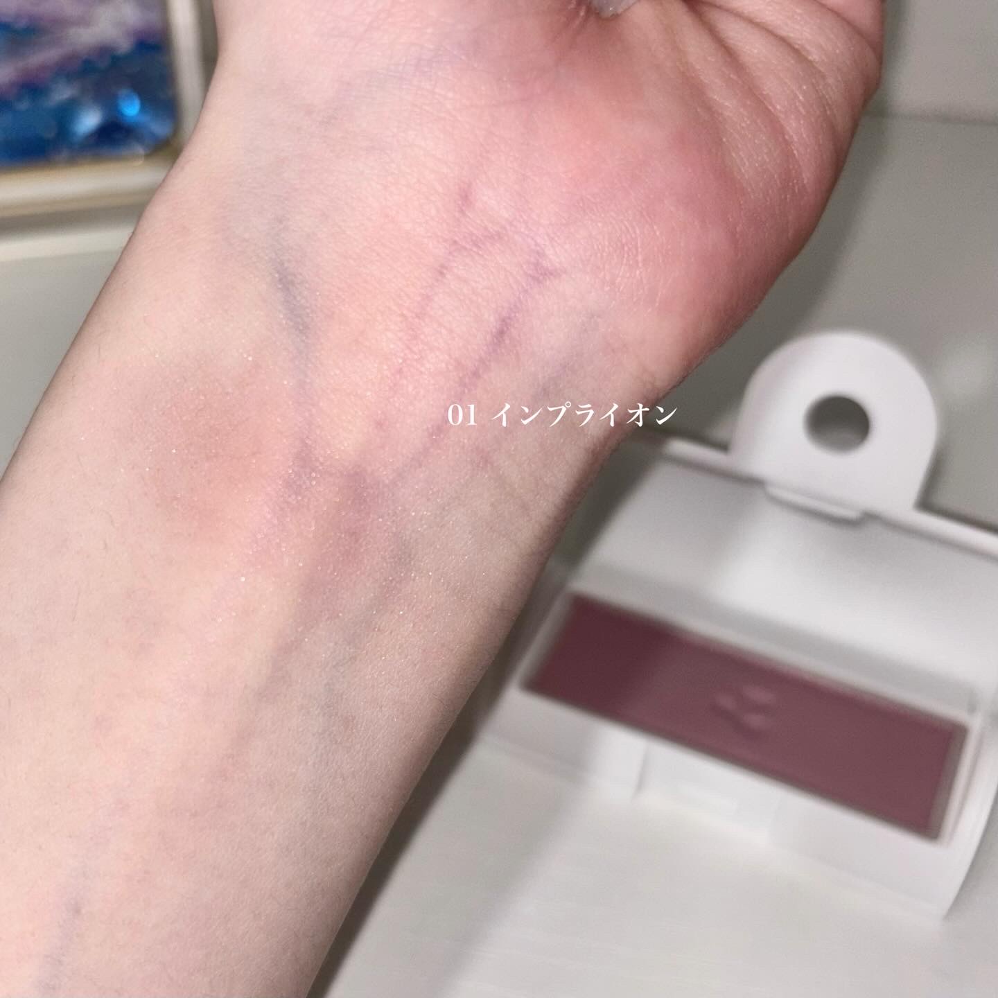 液体自体は蛍光パープルでびっくりするんですが、伸び広げると私の大好きなほんのり青みピンク🥺🩷 水彩という名の通りみずみずしいテクスチャなのでさらっとつけられる!! さらに塗ったあとのちょうど良いツヤ感とちゃんと肌を透かしてくれる透明感ときたらプチプラの域を超えています...