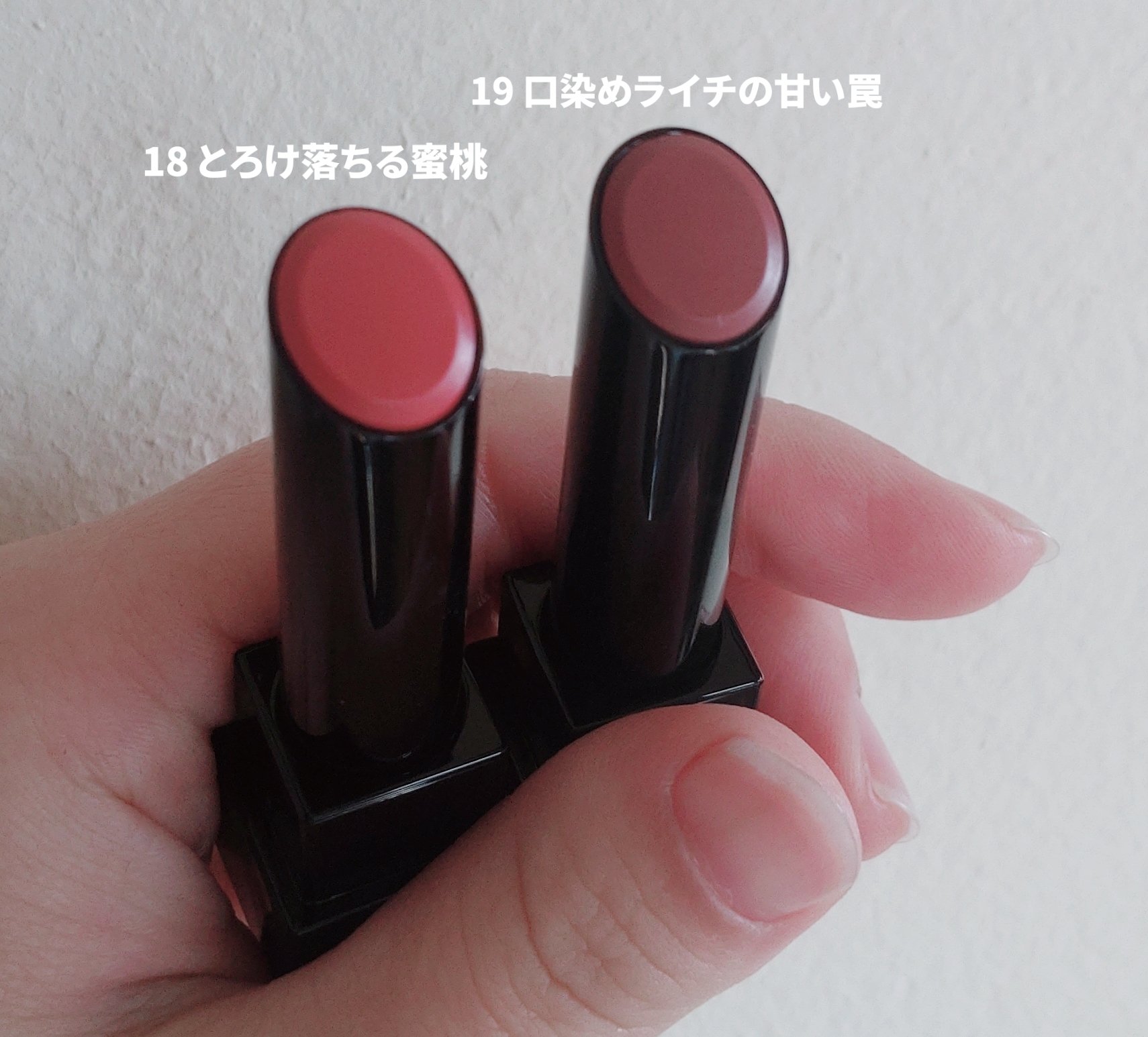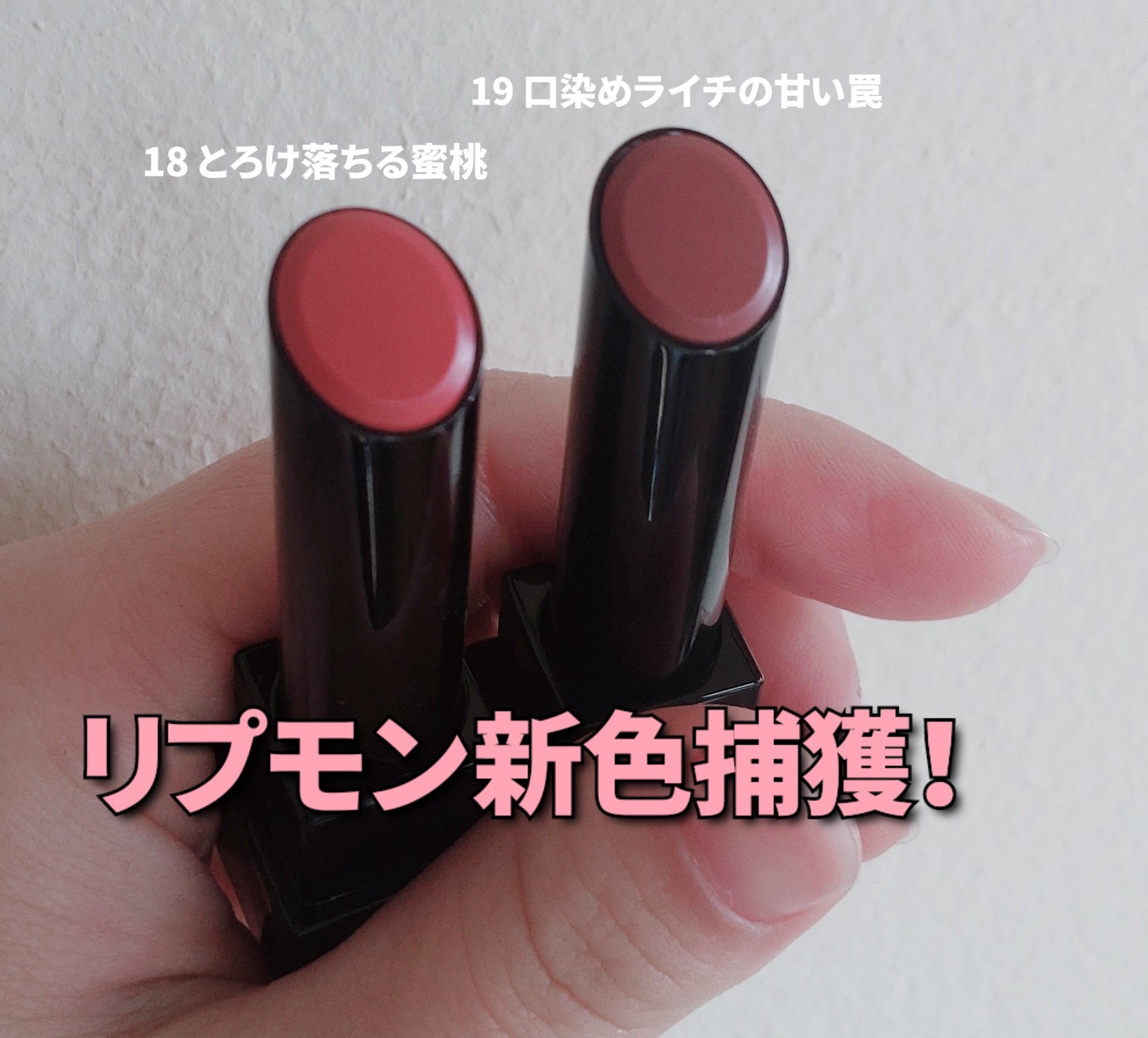 桃vsライチ、あなたはどっち派?イエベ春大歓喜の桃カラー&誰でも使いやすいニュートラルライチピンク!!KATEリップモンスター新色18とろけ落ちる蜜桃/19口染めライチの甘い罠🍑🧃18とろけ落ちる蜜桃イエベ春大歓喜😍🎉これを待ってた…ってなる...