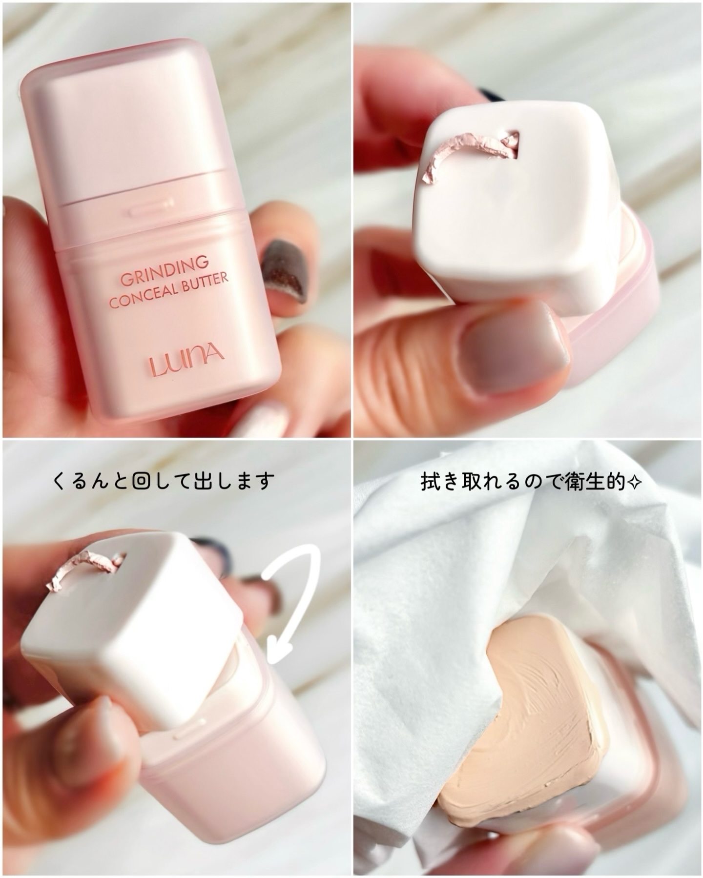 ・LUNAグラインディングコンシールバター🧈💛☑︎必要な分だけ削って使える量の調整が難しくて厚塗りになりやすいコンシーラーは卒業☑︎重くない、滑らかスムージング密着カバーこってり感ゼロ!バターのようにするっと伸びて薄くピタッと密着☑︎気になる...