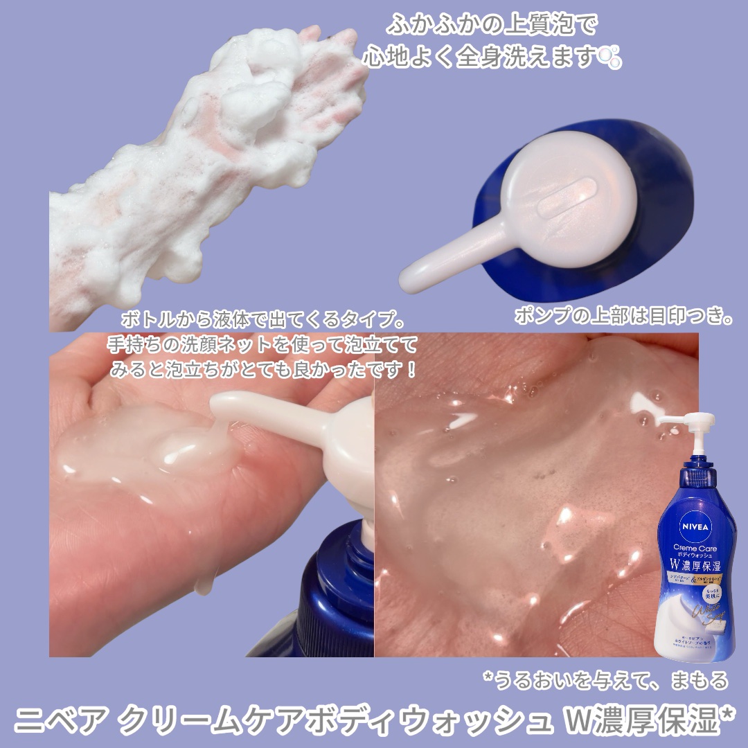 ニベアさまからいただきました。#PR#モニター企画_W濃厚保湿🟦ニベアクリームケアボディウォッシュW濃厚保湿ヨーロピアンホワイトソープの香りニベアのスキンケア発想から生まれた、うるおいを与えて、まもるW濃厚保湿*処方のボディウォッシュ*うるお...