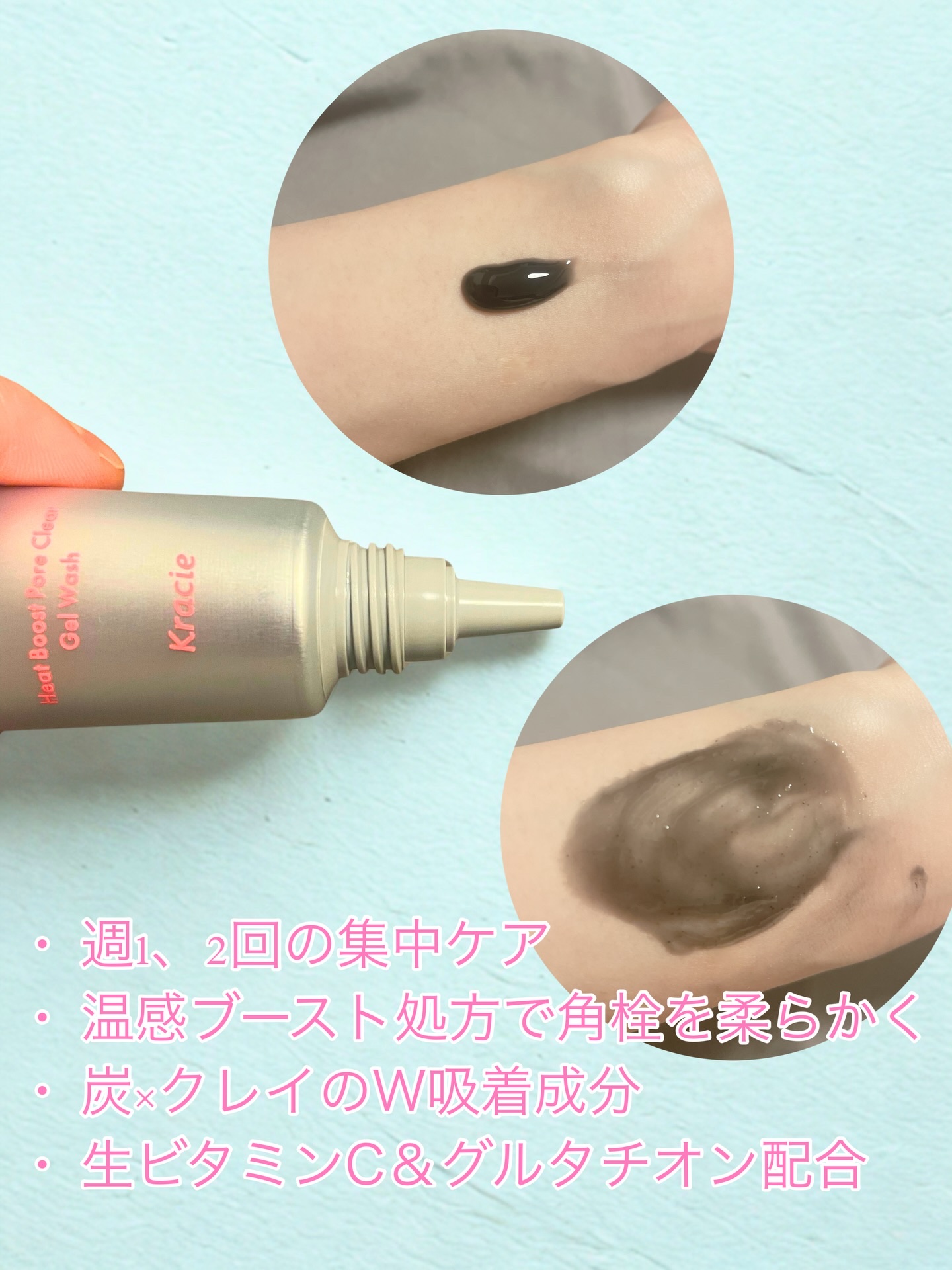 skimmeヒートブースト ポアクリア ジェル洗顔ブラックヘッド(毛穴)に熱でアプローチ!まるで岩盤スチームをしたような肌体験♡毛穴用ジェル洗顔粘りのあるテクスチャの黒いジェル。週1、2回がおすすめ。洗顔後に毛穴が気になる鼻や顎などをくるくる...