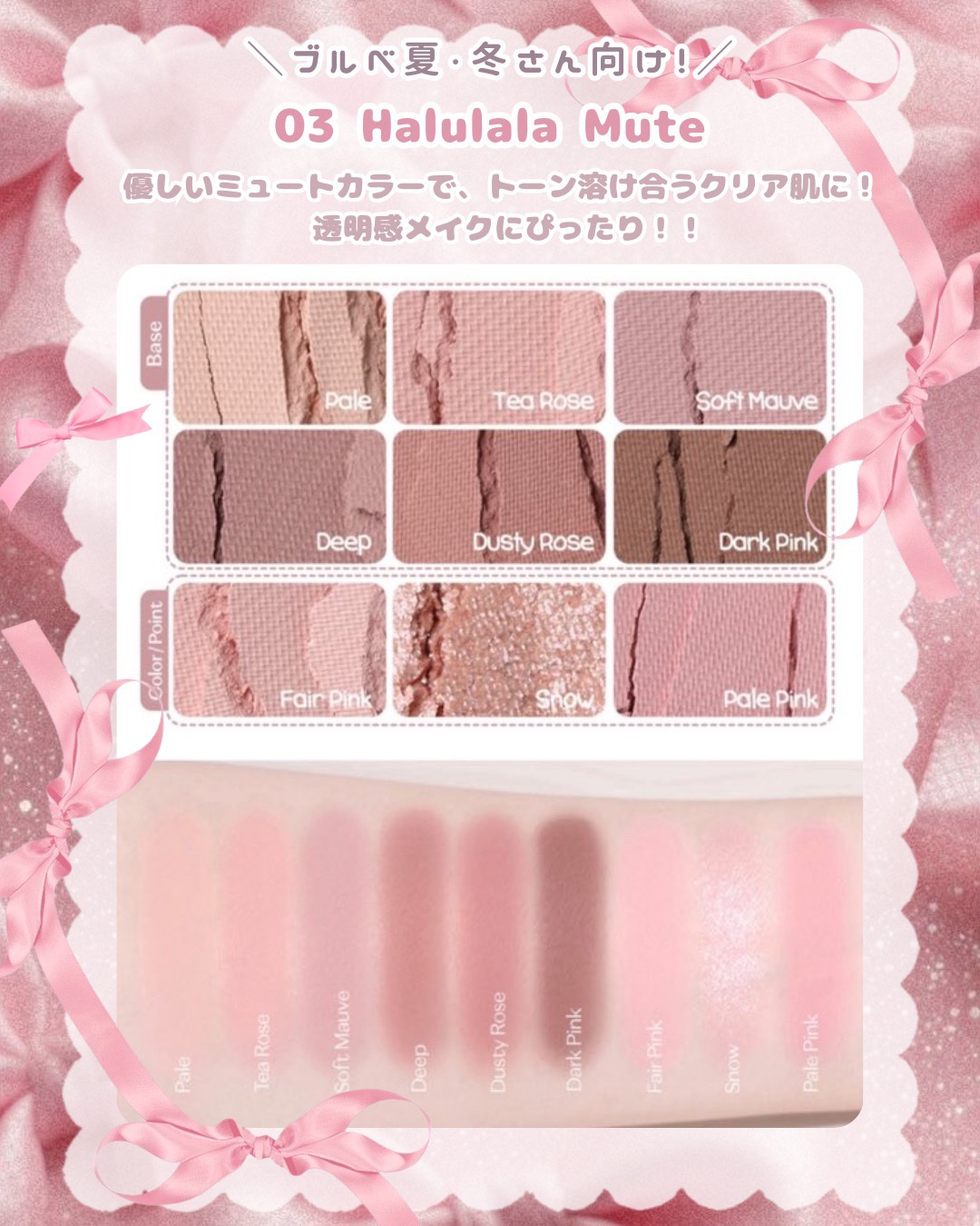 | アイシャドウパレットランキング第6位 | 粉質がふわっとなめらかになり発色もしっかりめになった! | 詳細を見る | |