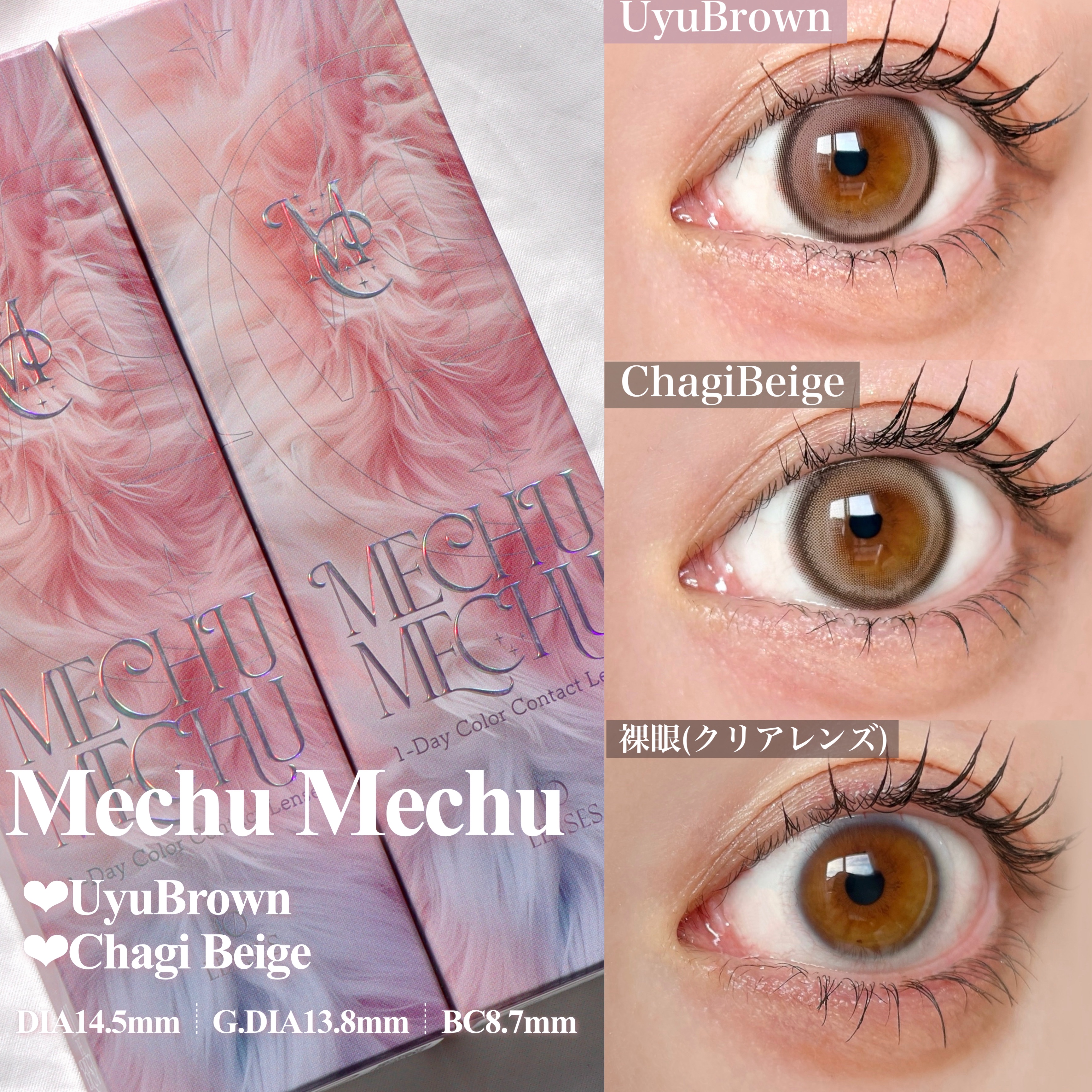 MechuMechuに新色登場🎀ꕀ.·パケもリニューアル𖤐̖́-*⑅︎୨୧୨୧⑅︎*MechuMechu1day各¥1,485(税込)*⑅︎୨୧୨୧⑅︎*瞳に仕込むうるちゅるハイライトで天使のような”ふわきゅんEYE"に໒꒱·゚♡⃛DI...