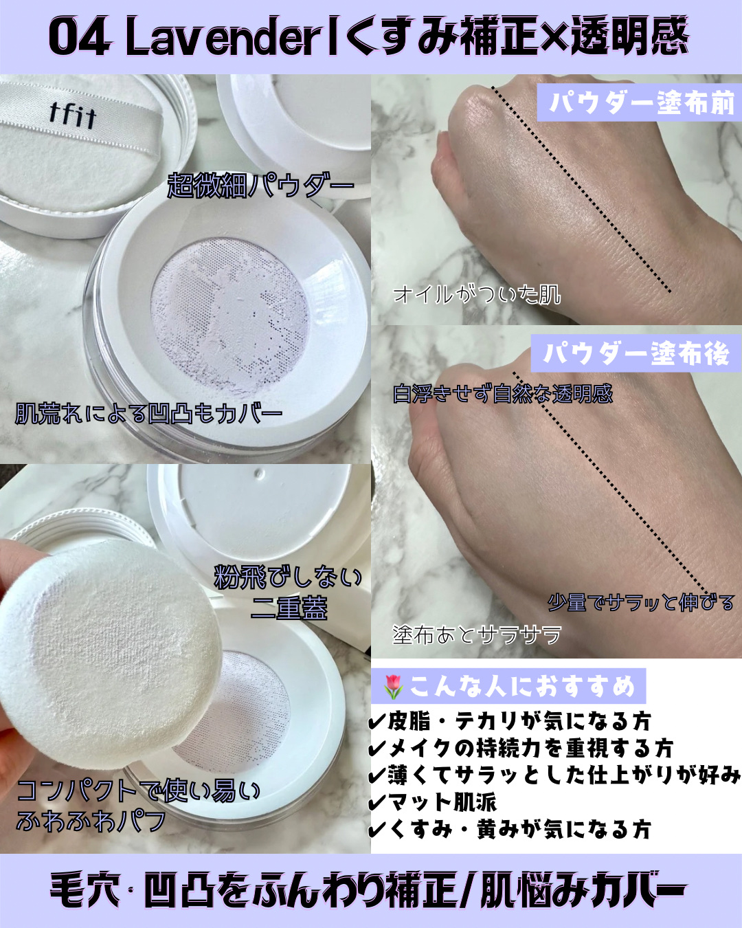 | フェイスパウダーランキング第13位 | 細かなピンクっぽいラベンダーっぽい粒子が フワッと密着してくれて 柔らかな顔の印象になる | 詳細を見る | |