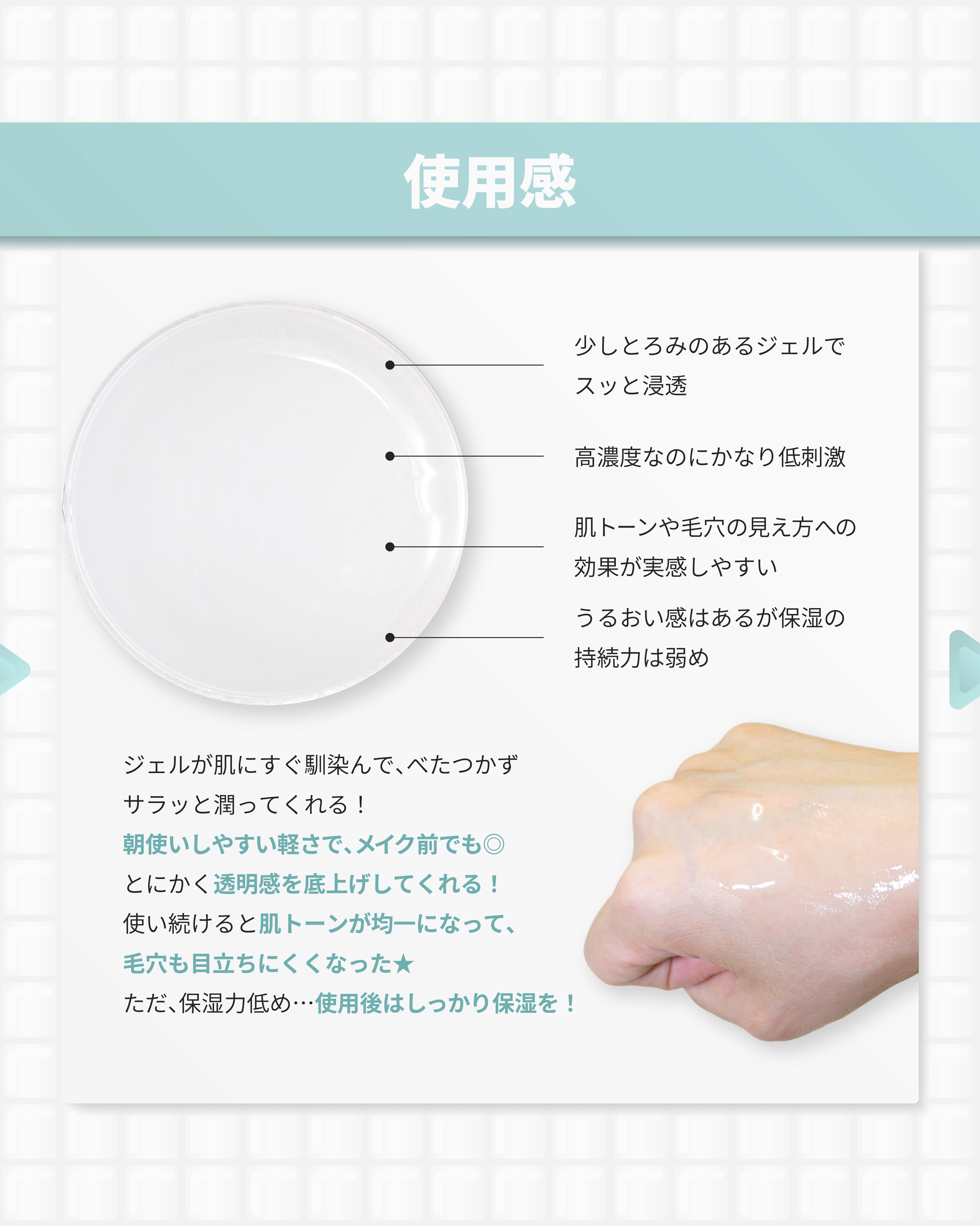 | スキンケアランキング第50位 | とってもみずみずしくてベタつきにくく、他のスキンケアとも合わせて使いやすくて良い‼️ | 詳細を見る | |