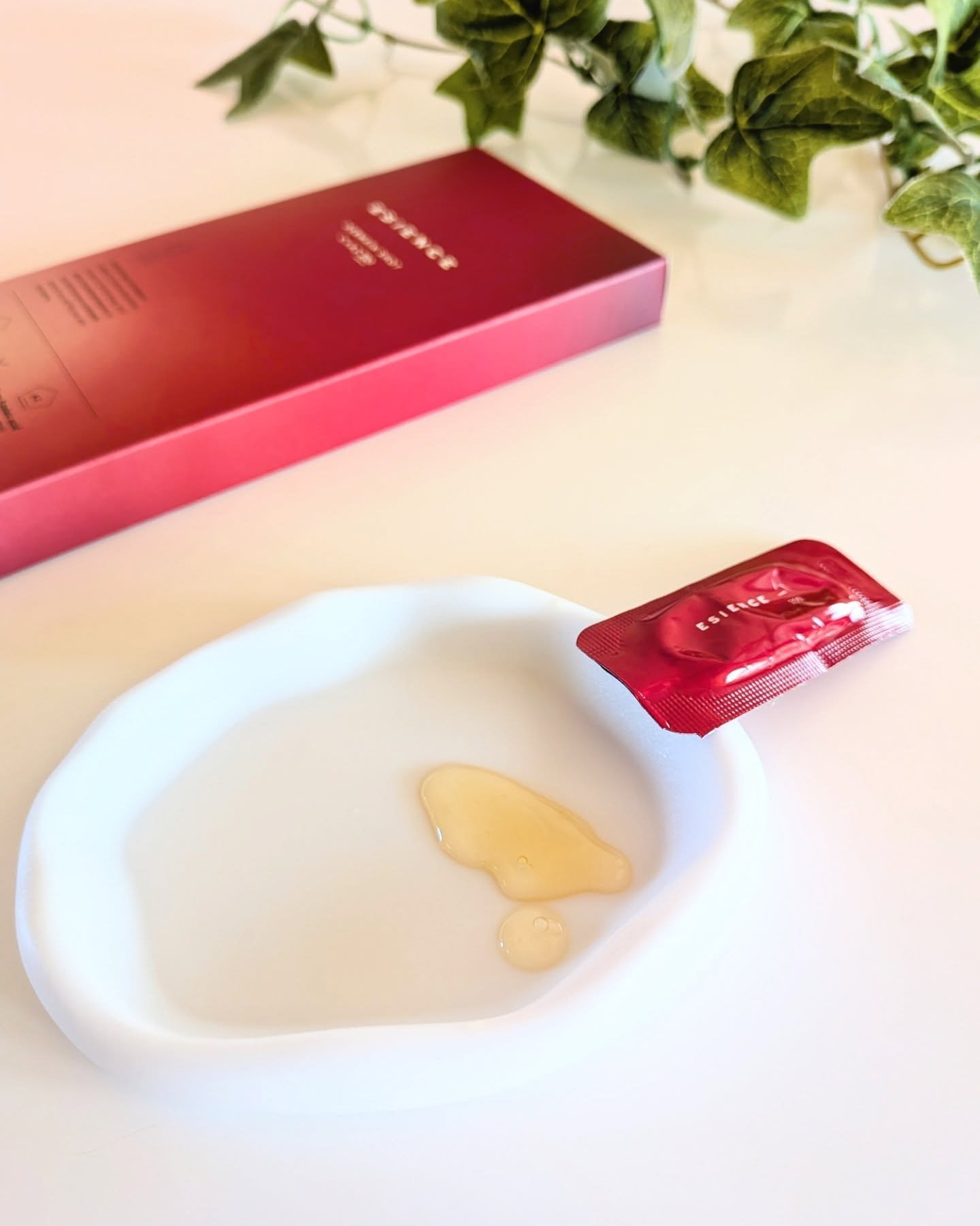 透明でとろみあるテクスチャで肌なじみもよく、伸びもいい。ベタつかないさらっとした使用感です。 1回の塗布で72時間うるおいをキープし、みずみずしい透明感あふれるツヤ肌へ導いてくれるそうです。