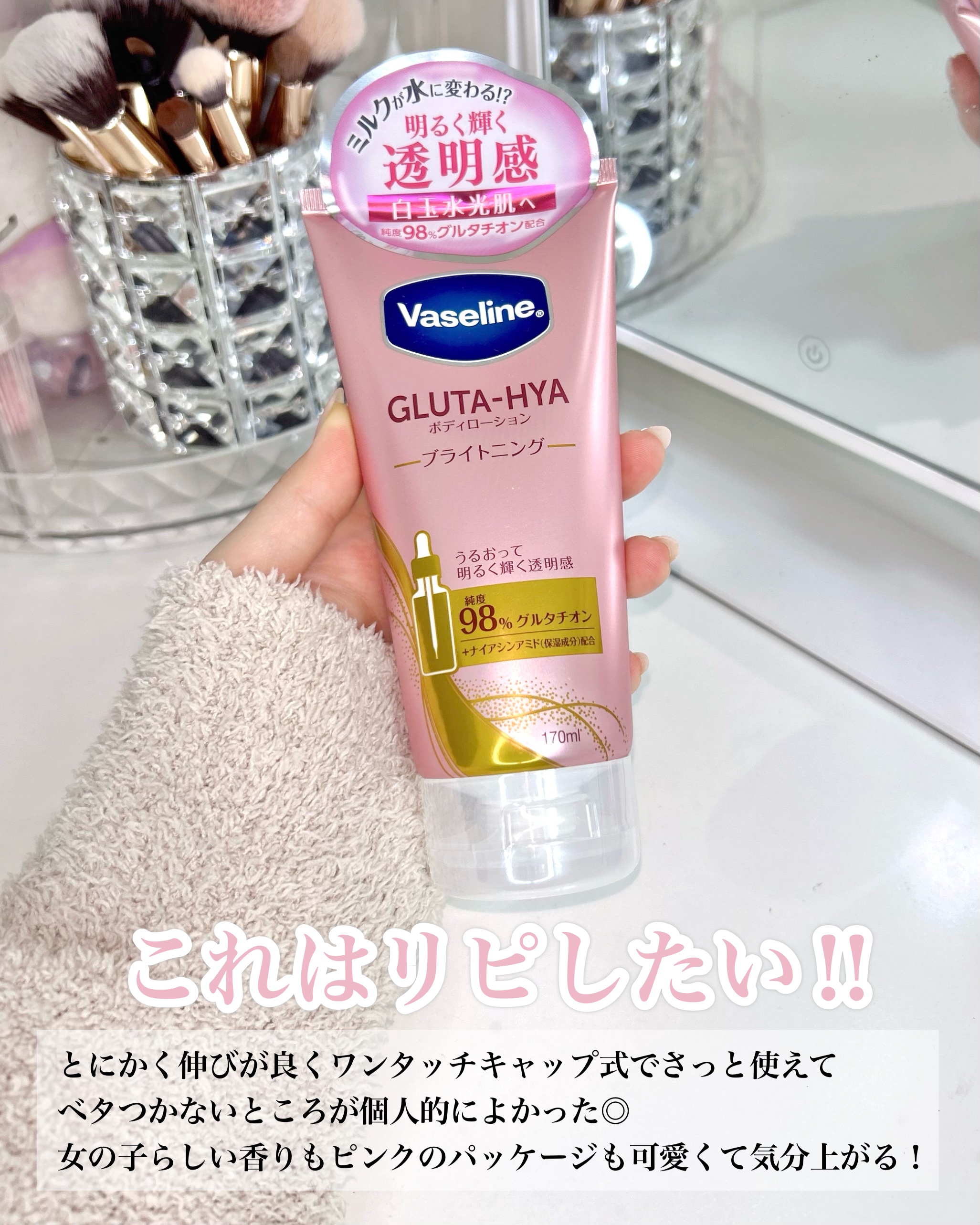 ヴァセリングルタヒアボディローションブライトニングやっと日本で買える\海外で大人気の話題のボディローション/☑︎ベタつかないのにうるおう☑︎透明感ケア☑︎お肌にすっとなじんでくれるほんのりとピーチ&ローズが香る🌹#PR#ヴァセリン#LIPSプ...