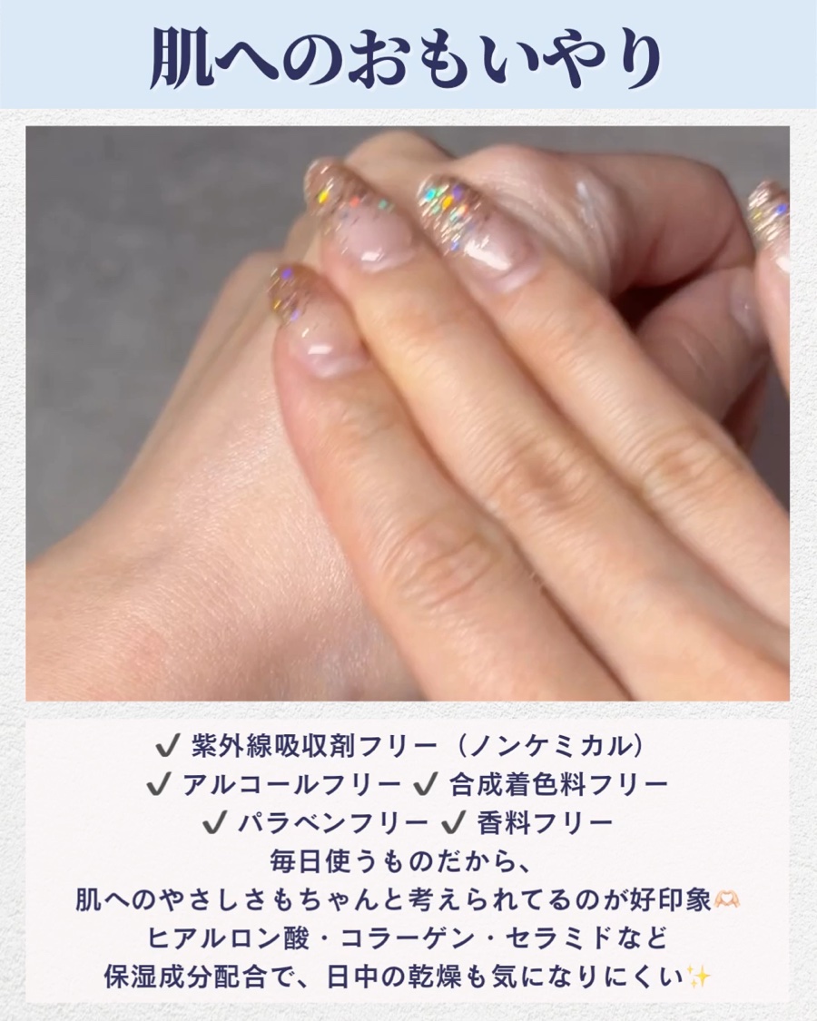 - まるで、空気のようなつけ心地なのに、 強力紫外線をカットしてくれる! しかも、紫外線吸収剤フリーのノンケミカル処方。