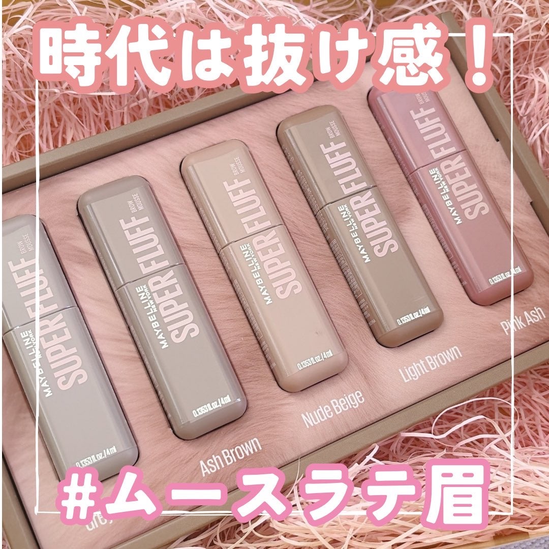 - \NO MORE パリパリ眉!/ 1日*ずっと、ほわっふわ眉。ムラなく色づき、黒眉ミュート ★商品特徴 ①エアリームーステクスチャー 空気とパウダーを混ぜて泡立てたような、軽やかなホイップムーステクスチャーだから、 べったりつかず、固くならない。ふわふわ仕上がり24時間*つづく。 ②テク要らずミニブラシ 先端に向かって細くなるブラシが、細かい毛も余さずキャッチするから、眉頭から眉尻まで均一にムラなく塗れる。 ③全5色展開 なりたい印象に合わせて選べる5色展開。 自眉の黒を消して存在感を抑えたい方にも、髪色に合わせた自然な眉にしたい方にも。 ★カラー展開 -ピンクアッシュ :いちごムースラテ -ライトブラウン :キャラメルムースラテ -ヌードベージュ :バニラムースラテ -アッシュブラウン:ミルクチョコムースラテ -グレーブラウン :ごまムースラテ * メイベリンニューヨーク調べ。個人差があります。