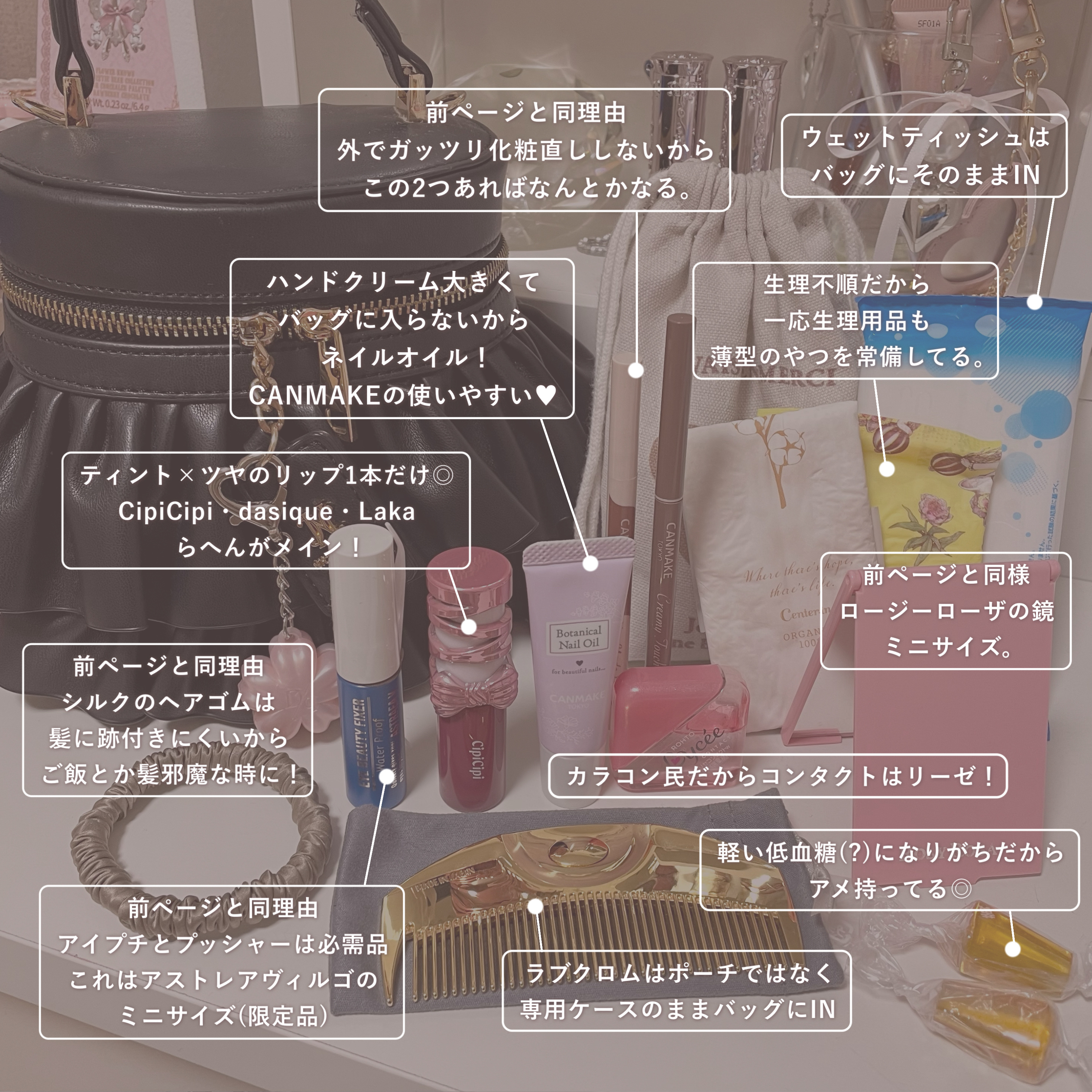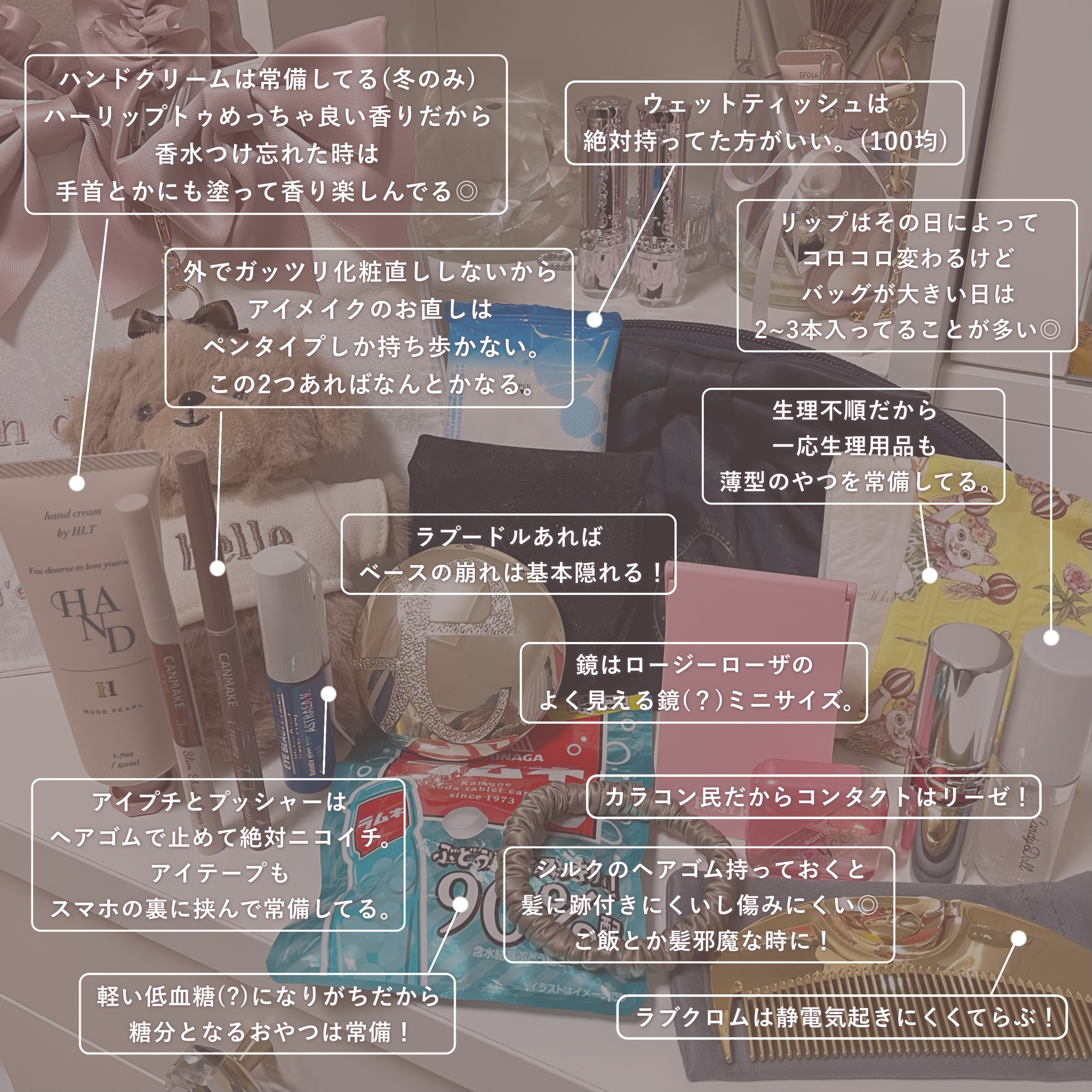 百均のくまさんポーチ(もはやくまさんシリーズ全般)めちゃめちゃ可愛いですよね!しかもクオリティが高くて好きです🫶 個人的なメイクポーチの必需品だと、基本的にバイトくらいでしか家を出ないので、ミラー、櫛、保湿リップ、日焼け止め、パウダーorミスト(季節による)、ちょっとしたお菓子系ですかね…🤔