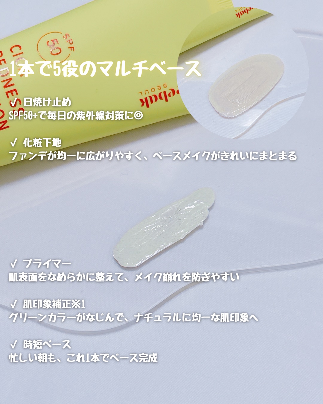 1本で5役のマルチベース化粧下地・プライマー・日焼け止め・化粧下地・トーン補正としてもマルチに活躍☝️ファンデーションの密着感を高め、メイク崩れを防止。「スキンケア×日焼け止め」スキンケアにプラスして紫外線対策も。毎日使えるUVMeebakC...