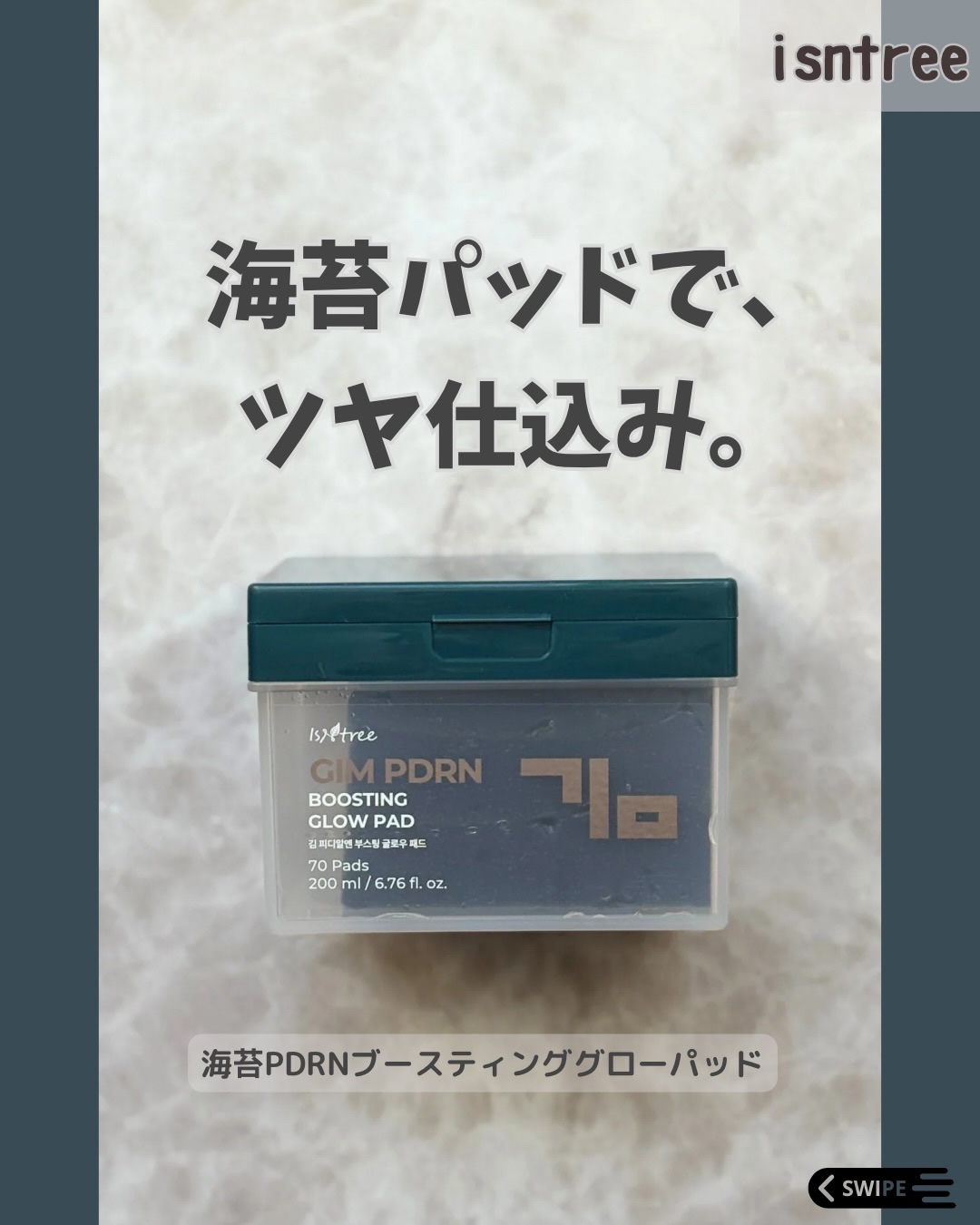【まるで本物の海苔👀⁉️】isntreeの海苔PDRNパッド💚🌱まるで韓国海苔のようなビジュアルが衝撃的のトナーパッド!海苔(ギム)PDRN(ポリデオキシリボヌクレオチド、保湿成分)配合🌊2in1パッドでメイクノリが良い水光肌を完成してくれる...