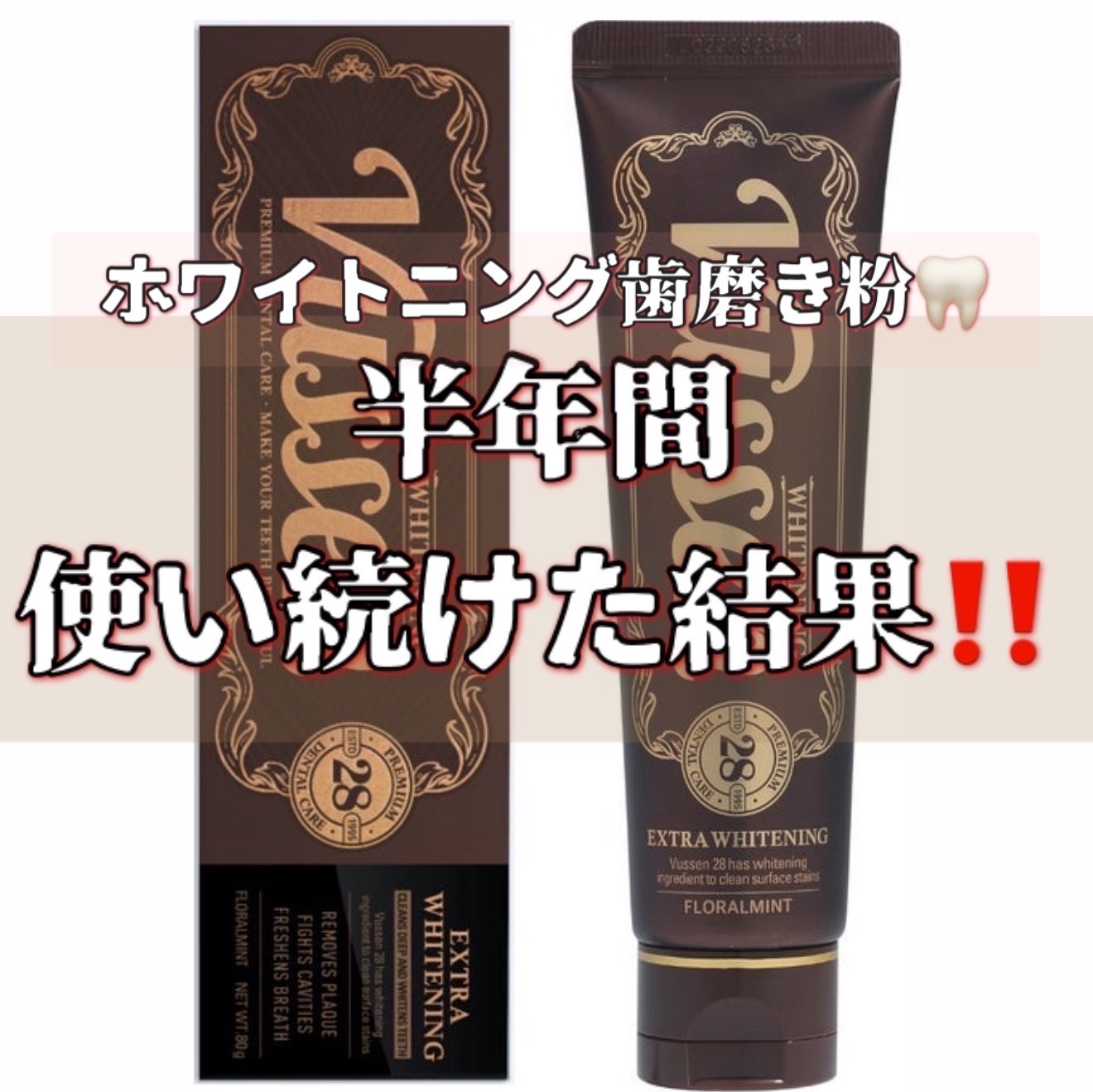 お家でもサロン級のホワイトニングが出来る濃度だそう⋯ (初めて使う方は濃度低めからがおすすめです🤭) ビュッセン 歯磨き粉 28を1回使ってみると歯の着色が落ちて歯が明るくトーンアップしました✨ 歯が染みにくく、着色や黄ばみも付きにくくなったのでこれからも使い続けて行きたいと思います!