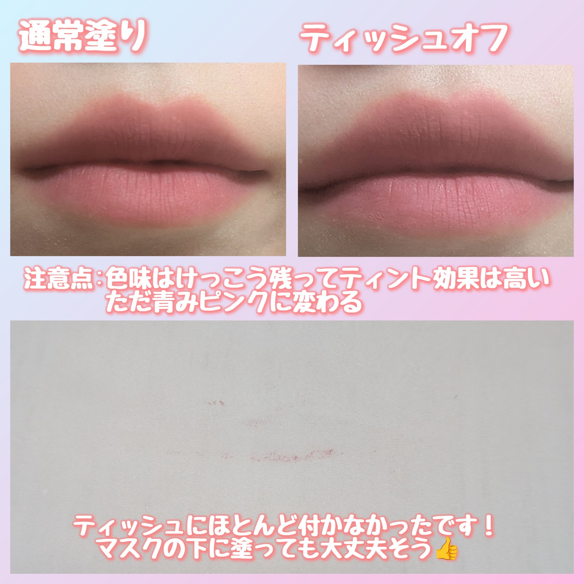 | ふわっふわのマットリップで塗り心地はめちゃくちゃ良き。 プランパー成分入りで少しスースー感あります。 | 詳細を見る |