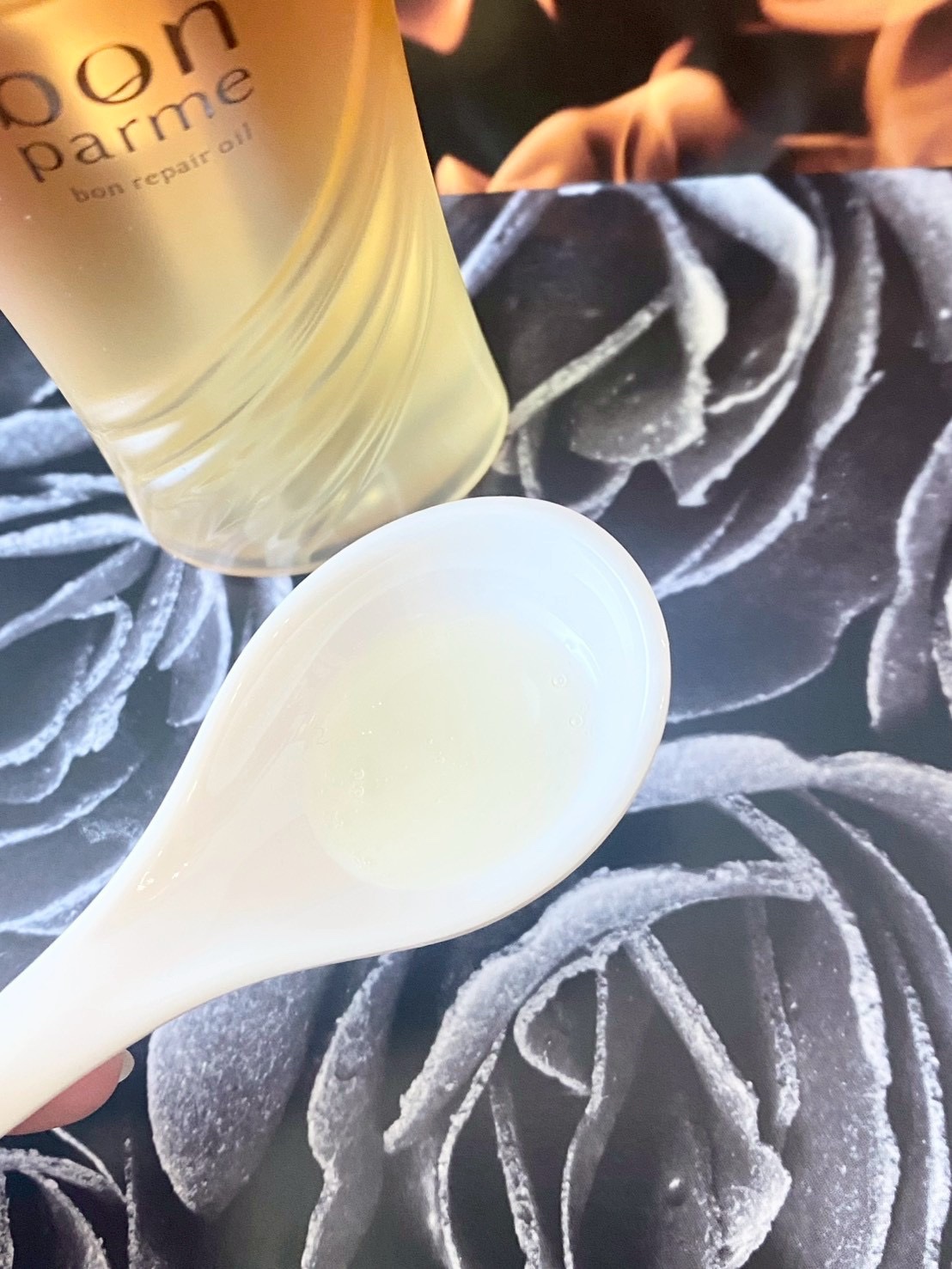 - ダメージ毛先も、広がりも、”つるん”とまとまるんっ! 仕上げのひと滴で”ととのう”ヘアオイル 【アプリコット&ムスクの香り】 ”ととのう”カギは温泉水と美容オイル パサつきや湿気で広がる髪を落ち着かせ、毛先までなめらかに整えるには、 髪の内側の補修と、外側のコートが欠かせません。 せっかく与えたうるおいも、キューティクルが開いたままでは逃げてしまい、 ツヤも手触りも長続きしません。 ボンリペアオイルは、ボンパルム専用の温泉水に美容オイルをかけ合わせ、 髪内部のうるおいを守りながら表面をなめらかにコート。 しっとり軽やかで、毛先まで輝くツヤ髪を叶えます。 ◆セレクト温泉水『シリカ酸性泉』 髪の主成分「ケラチン」をサポートするミネラル『シリカ』に、 キューティクルを引き締めてうるおいを閉じ込める「酸性泉」を合わせた温泉水。 日中の乾燥や摩擦、湿気などによるダメージから髪を守ります。 ◆髪を守る『リッチ美容オイル』 アルガン・ホホバ・バオバブ・月見草・メドウフォームなど 豊富な植物オイルを贅沢に配合。 軽やかなのにしっとりとした質感で、髪のまとまりとツヤを持続させます。 ◆スキンケア発想の『美容成分』 「ビオチン」「グルタチオン」「γ-ドコサラクトン」など、 美容クリニックでも注目されるエイジングケア*成分を配合。 熱ダメージ補修や抗酸化ケアで、髪のハリ・コシ・ツヤをサポートします。 *年齢に応じたケア