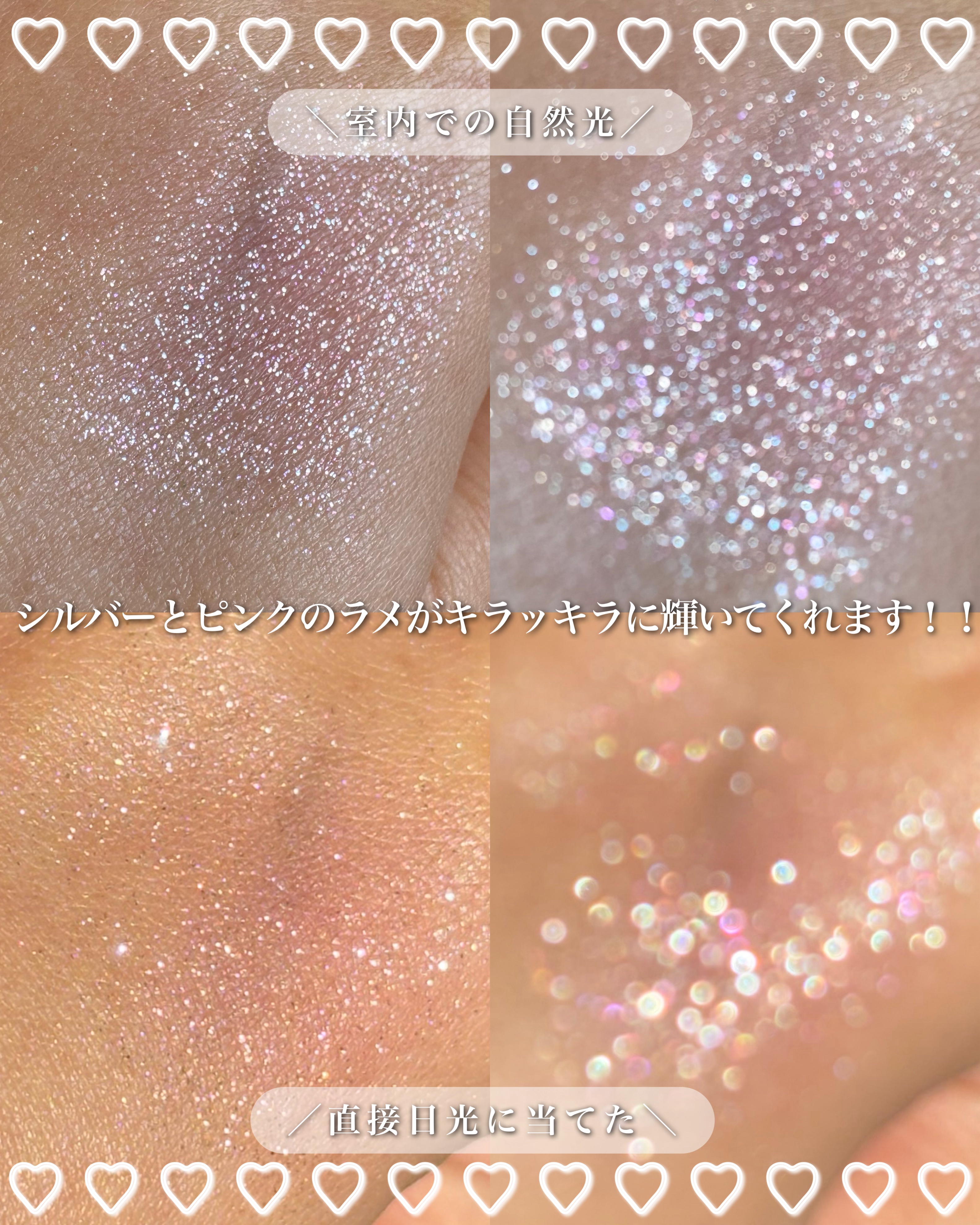 - まばゆい輝き、踊る色彩 グリッターシャドウ 01チラチラと輝く上品な煌めき 高輝度な大粒ラメや微細パールがまぶたの上でチラチラと輝き、上品なうるみEYEに。 単色使いはもちろん、レイヤードを楽しめます。 02長時間、ピタッと密着 パウダーでもクリームでもないやわらかいテクスチャーがまぶたにピタッと密着し、ラメ落ちを防ぎます。 03ラメを引き立たせるミュートカラーベース ベースカラーの発色を控えめにすることで、肌に馴染んで、ラメやパールの煌めきを引き立たせます。