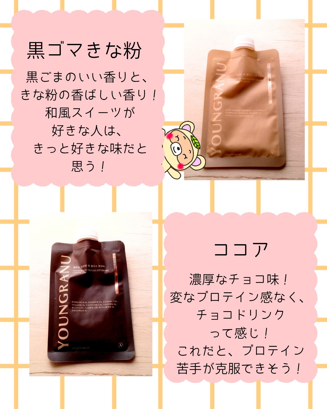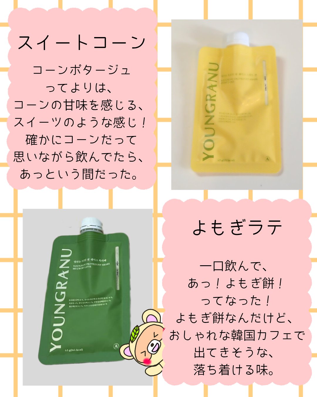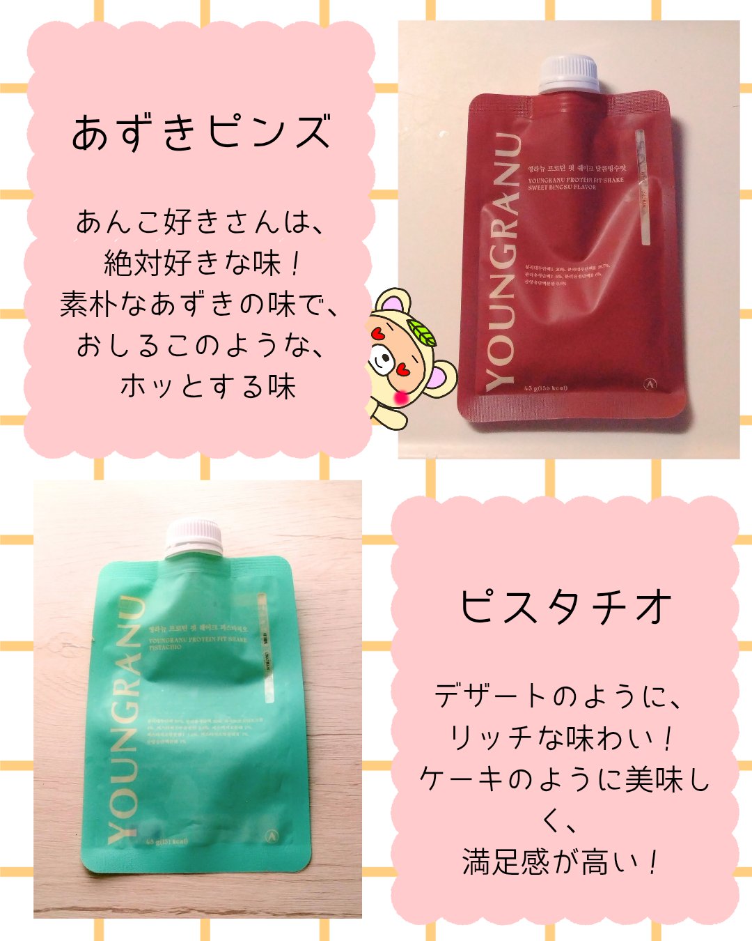 【ヨンラニュープロテインフィットシェイク】穀物ゴマ/ココア/スイートコーン/ピスタチオ/よもぎラテ/あずきピンス1袋に20gのタンパク質!150kcalでダイエットにも美容にもおすすめ❗️水でも美味しい!パフ入りで噛みごたえもあるし、味も6種...