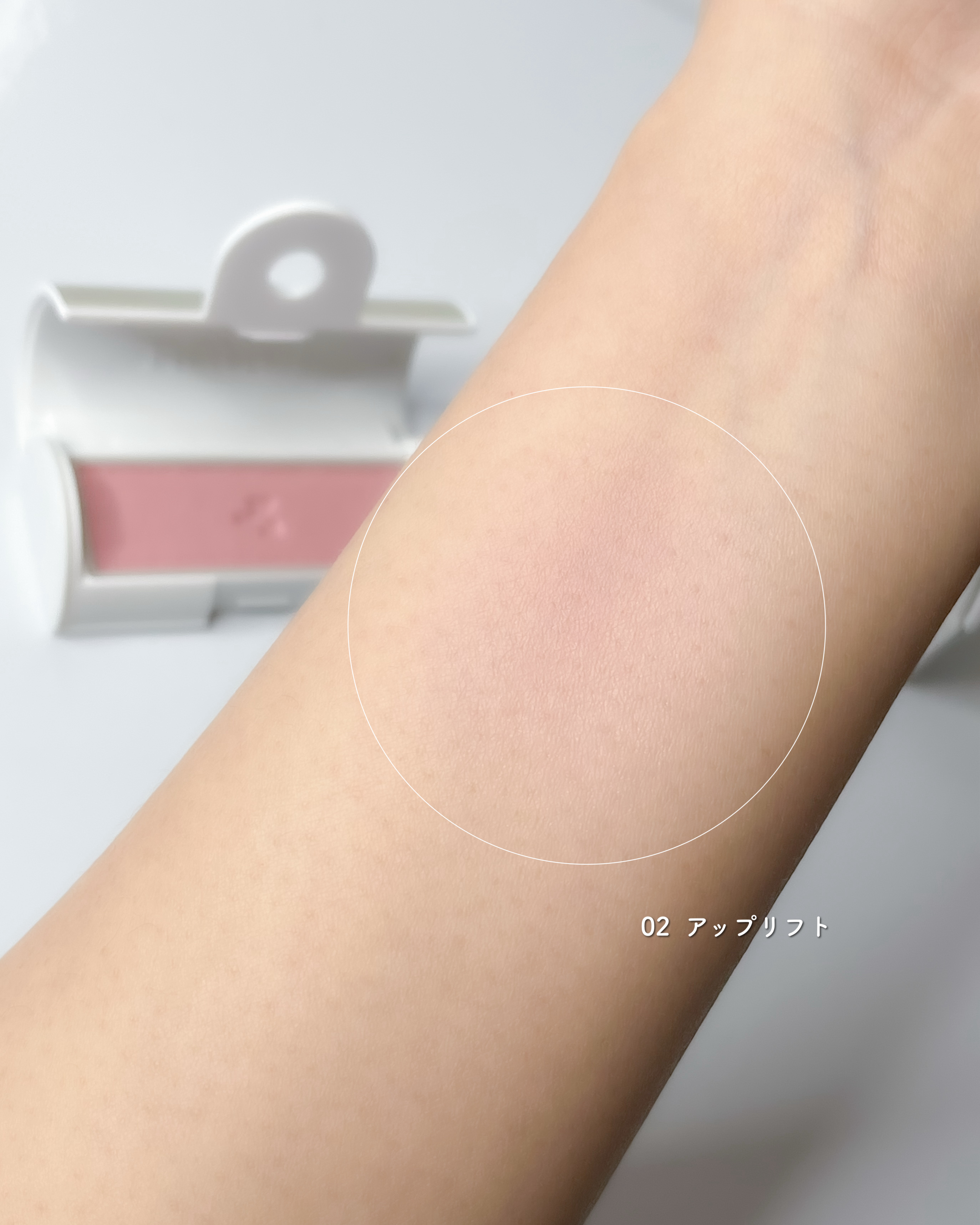粉質が柔らかく、肌当たりが優しい♡ 手で触ってみて人気なのが分かる! しっとりとしたような柔らかさで肌に密着して溶け込むような発色。 発色は強くなく、透明感のある発色なので ふんわりと血色感が出せる♡ 大人の上品な血色感で、透明感もでて ツヤのある綺麗な肌に仕上がります😌ꕤ