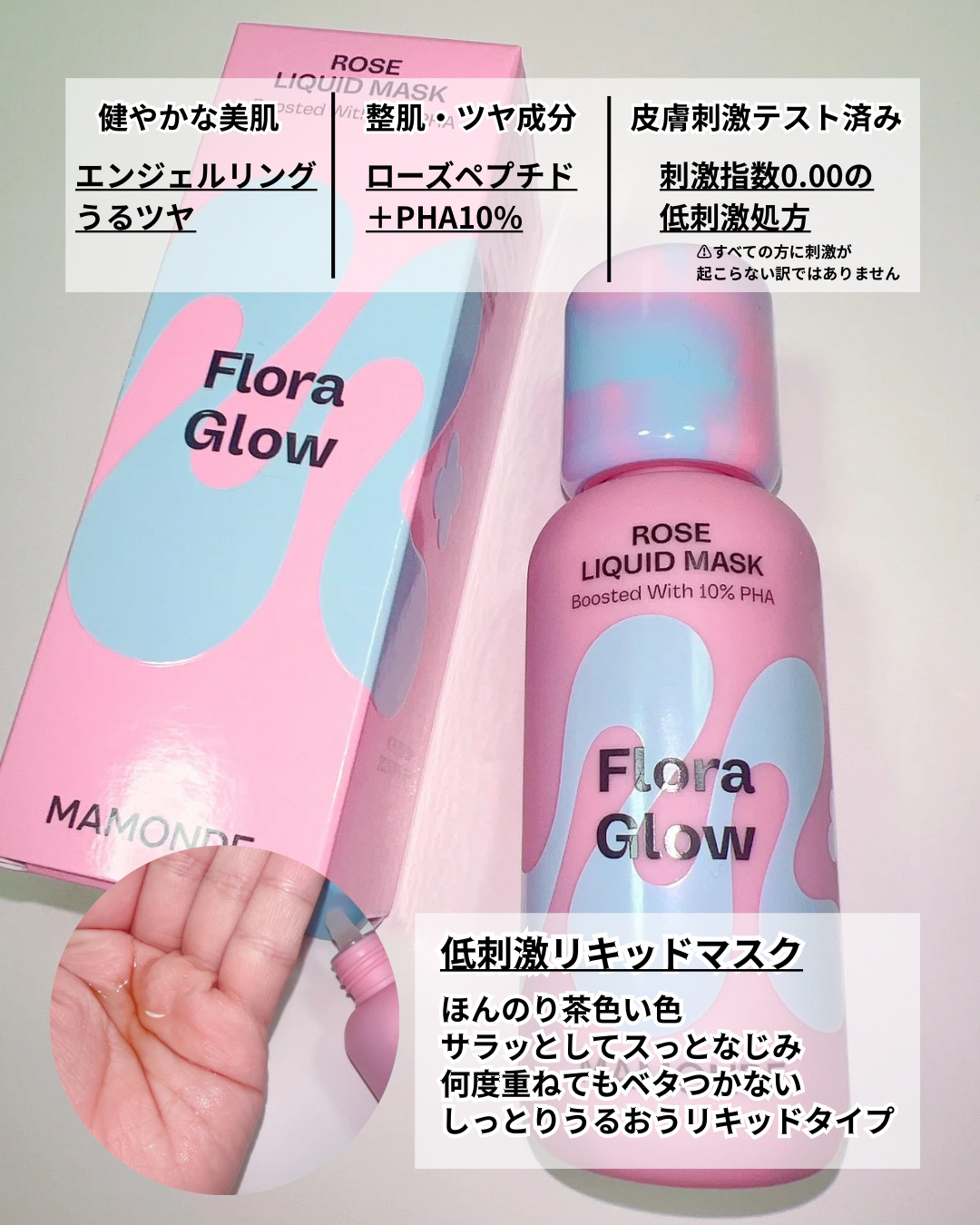 ◎MAMONDEローズリキッドマスクFloraGlowこれはちょっと前に、ダイソーの1回分のパッケージの方が、『メイク前に仕込むと艶感がやばい!!』と人気になったやつ🍬4月に韓国に行った時に運よく大きいサイズのを買えて、ほぼ毎日ずっと使ってい...