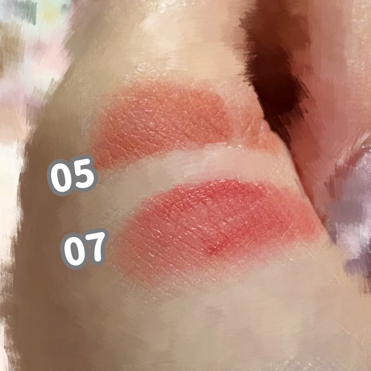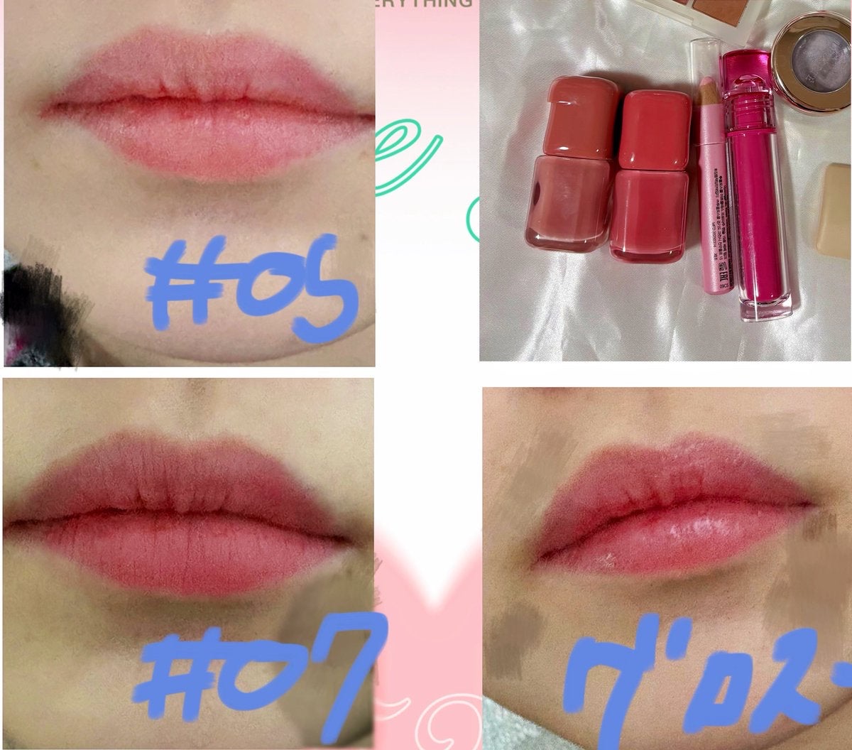落ちないリップです💄✨ ティントじゃないから荒れにくいし、本当に愛用してる商品です!奇抜な色じゃないしデートの時にもオススメ💕 個人的ブルベ夏冬がこれ似合うわと思った色は6.7でした🙆♀️ (1は塗ると明るめのピンクで浮いてしまった) どちらかというと店舗色だけでみるとイエベ向けな気がするのでブルベ色増えろーと思ってます🤦♀️
