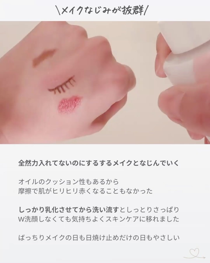 | とろっとしたオイルで、濡れた手で使えてW洗顔不要なのも嬉しい♪ | 詳細を見る | ||