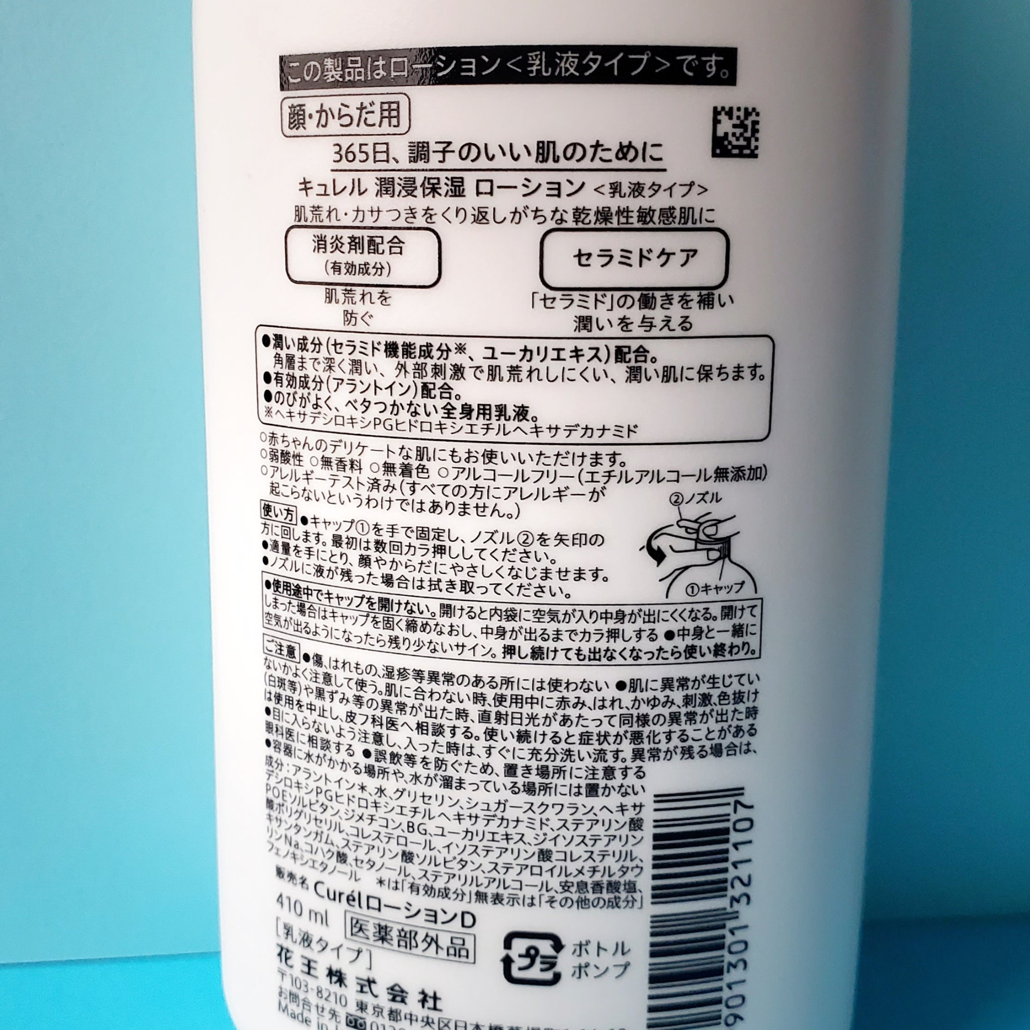 - 【敏感肌用】【医薬部外品】 ○潤い成分(『セラミド機能成分』・ユーカリエキス)が、角層の深部まで浸透。カサつく肌もしっとり潤います。 〇赤ちゃんのデリケートな肌にもお使いいただけます。 ○弱酸性・無香料・無着色・アルコールフリー(エチルアルコール無添加 〇荒れ性に。肌荒れを防ぎます。(消炎剤配合)(医薬部外品) <410ml>さっと出せるポンプタイプの全身用乳液。 商品に関するお問い合わせ 受付時間9:00~17:00(土曜・日曜・祝日除く) *製品の誤飲・誤食など緊急の場合は、受付時間外でもお電話ください キュレル:0120-165-698