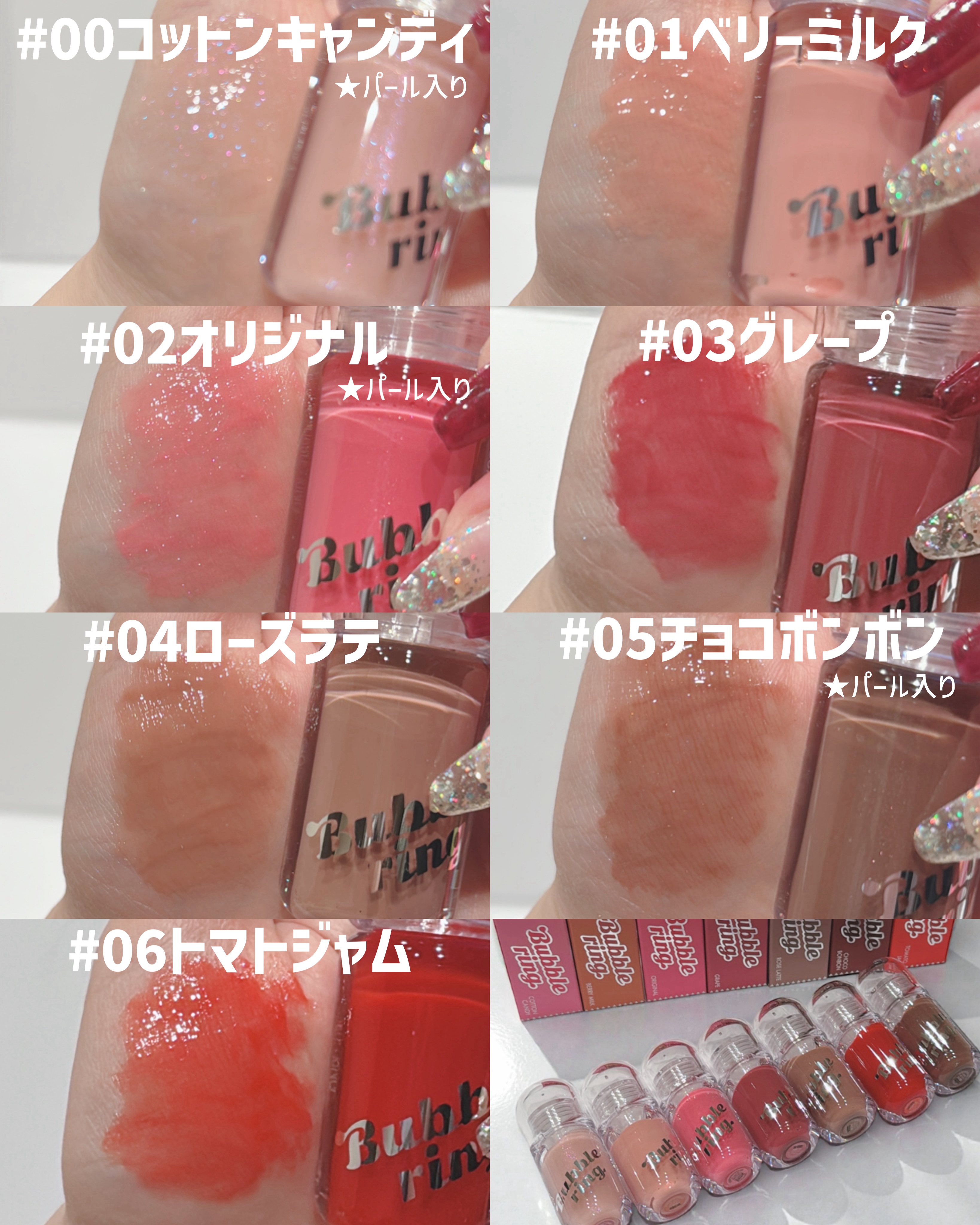 - ✔まるでフーセン!ビックチップで一気に盛れる #バブリンググロス ビックサイズのチップで、一度のタッチでも唇にフィットします。 重ね塗り不要で、お直しも簡単に。 ✔まるでガム!高密着で長続きする #ピタッとフィットグロス もちっとしたテクスチャーが唇に密着するため、飲んでも食べても落ちにくいロングラスティングタイプのグロス。 ✔ビビッドなカラーにラメをプラス #プレイラメグロス フーセンガムの味を連想させるカラー展開にラメをプラス。複数の色を重ねてカスタイマイズもできる遊び心たっぷりの唇で味わうチューインカラーフレーバー。