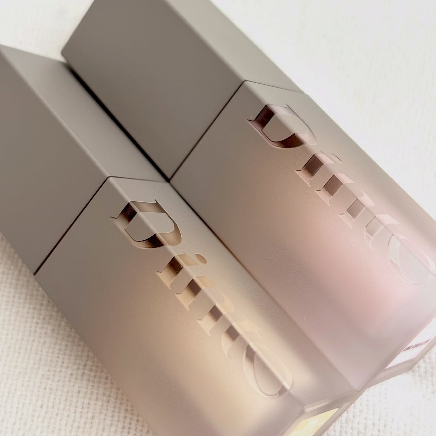 パープルっていうけどパープル感は個人的には感じず使いやすい🌟 ティッシュオフしても色残り有り。色によっては結構消えてなくなるものもあるけど、やはり青みのあるピンク系は色持ちが良い印象🤔💕 パケのデザインも可愛くてついつい手に取りがち🫶