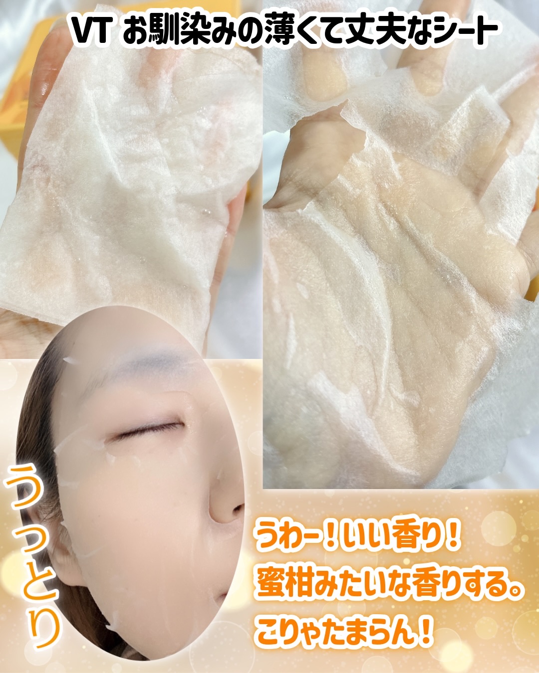 | スキンケアランキング第42位 | シートがみかん色でびっくり! とろっとろの液が含まれていて 貼り付けたらぴたーっとくっついてすごく気持ちいい! | 詳細を見る | |