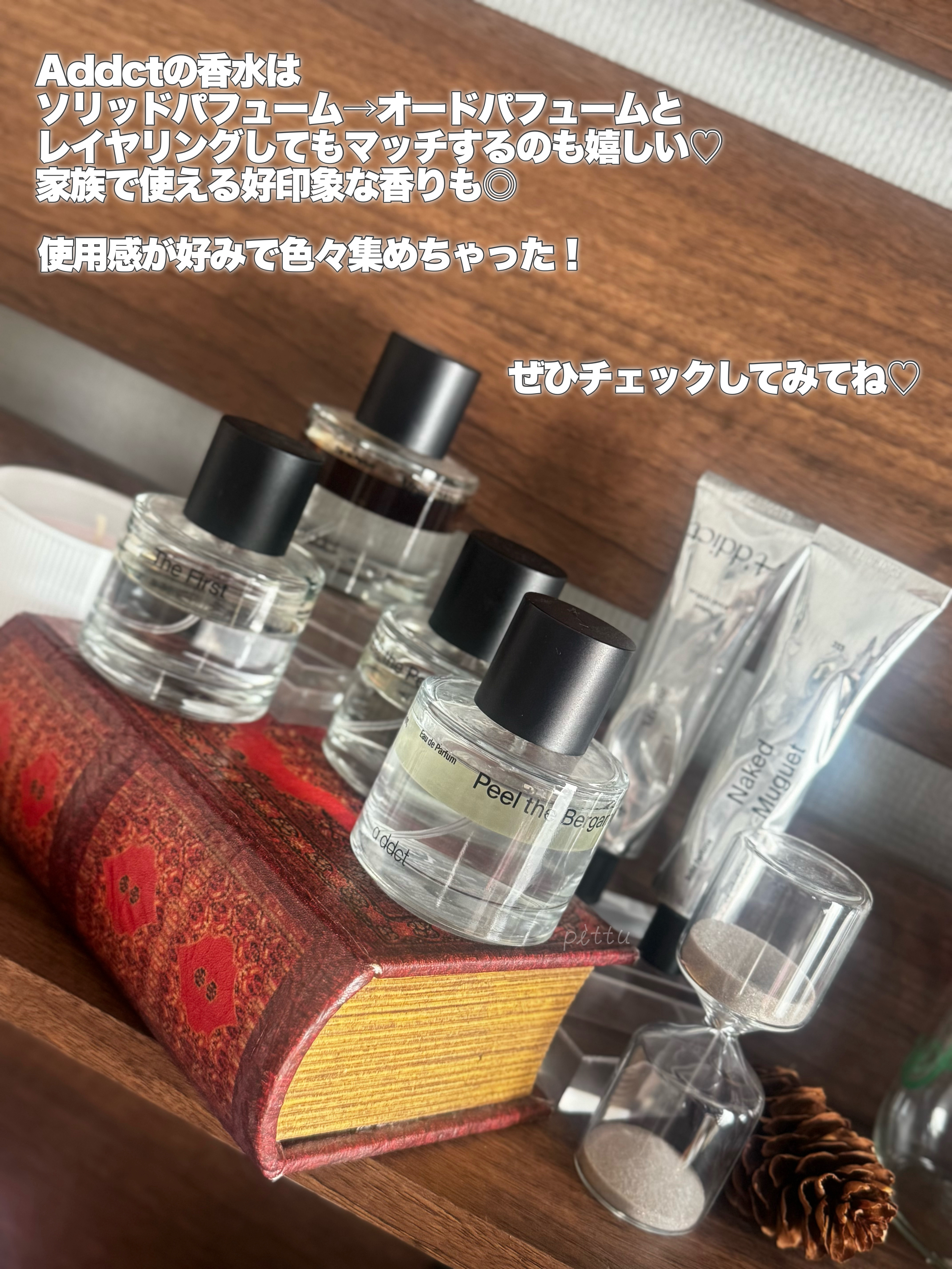 香りで遊ぶ、自分だけの香りのアクセント Addctパフューム・オードパフューム_addictPeeltheBergamot・ソリッドパフューム_NakedWildFlower402ウォーターベースの2層タイプの香水ふわっと香るのが魅力的🫧香り...