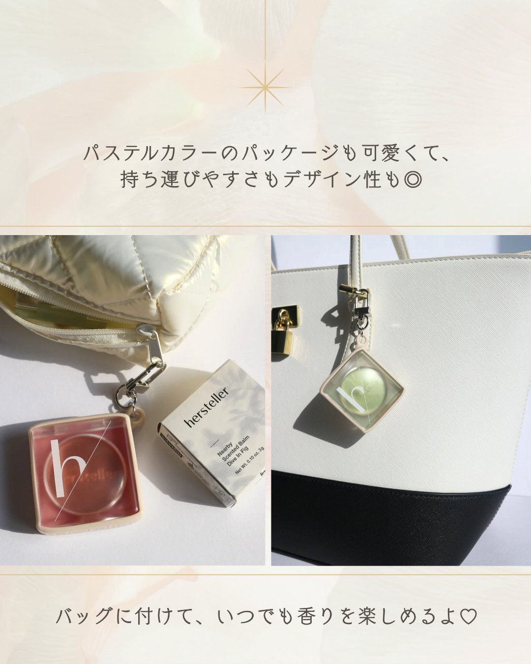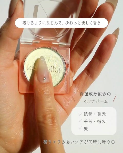 🫧💐持ち歩く香りのアクセ💐🫧hersteller|NearbyScentedBalm🤍体温でとろ〜っと溶けるメルティング感がたまらない🥹✨練り香水なのに軽くてベタつかず、首元・手首・鎖骨にさっとON💗キーリング付きでバッグにつけられるのも可愛...