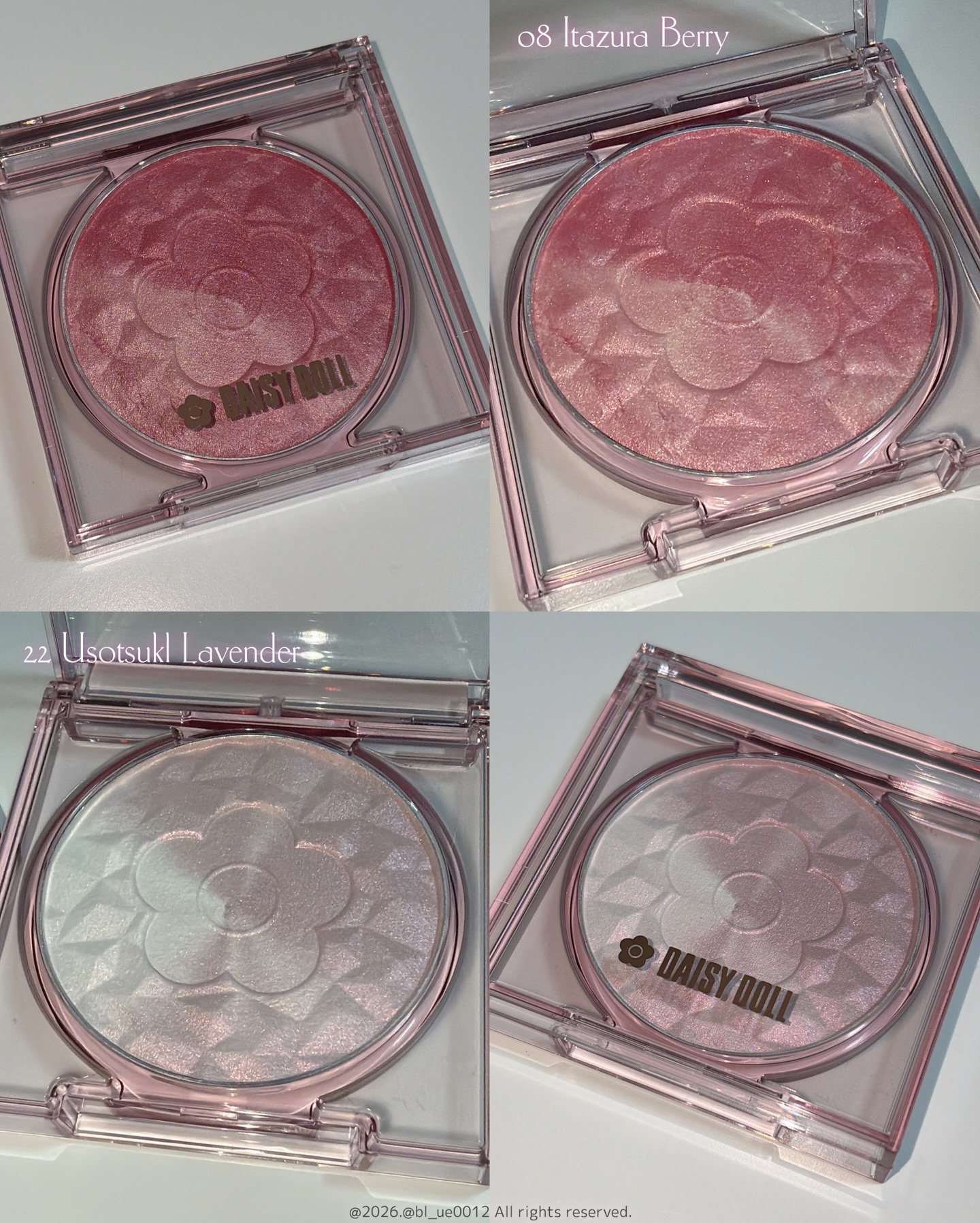 DAISYDOLL(デイジードール)📣2/1からロフト・アットコスメで先行発売される【パウダーブラッシュブルーム】春の新色!!全国発売は2/15から✍️💞マーブルとダイヤモンドカットの限定デザインが可愛いし取る場所によって違ったカラーが出せる...