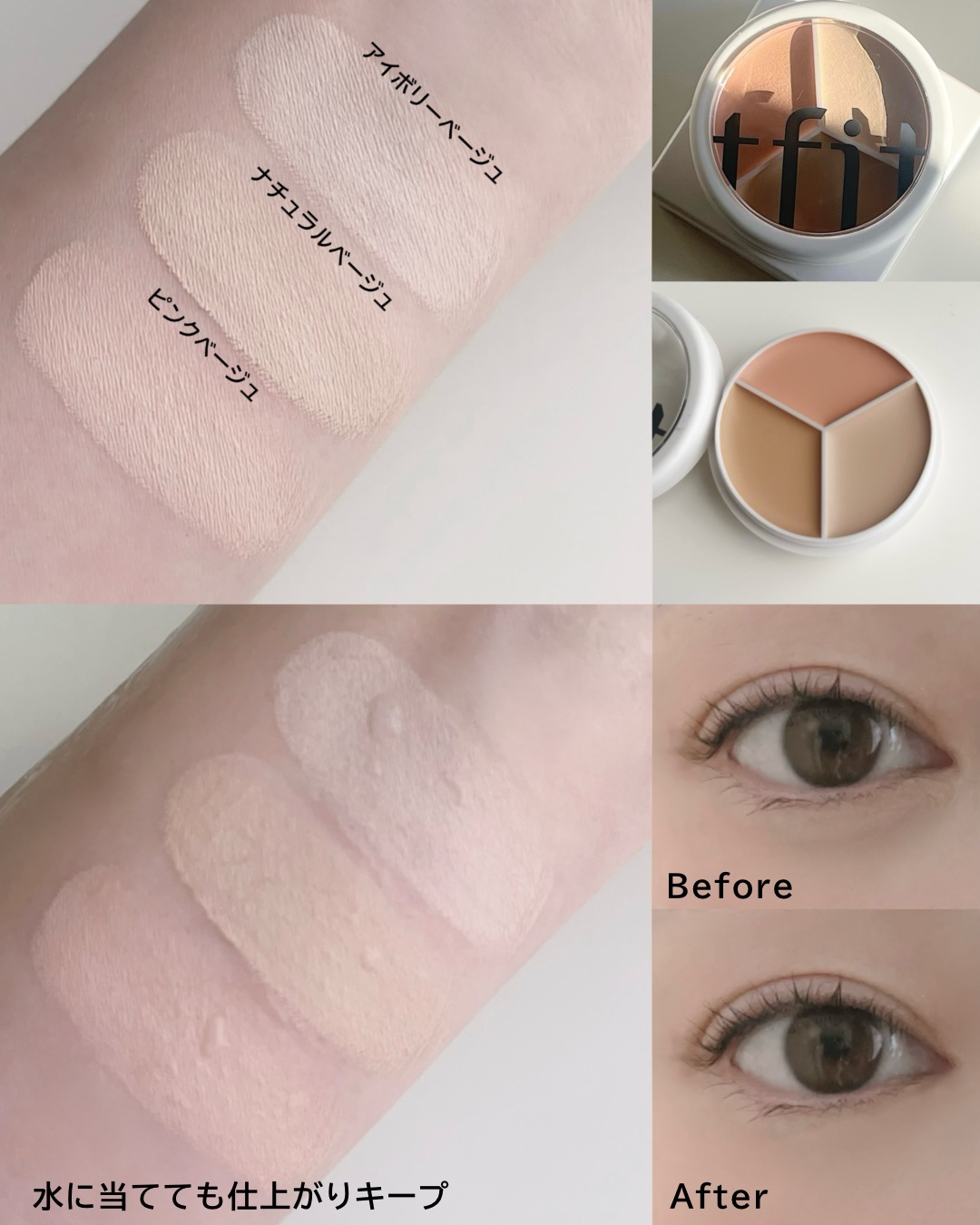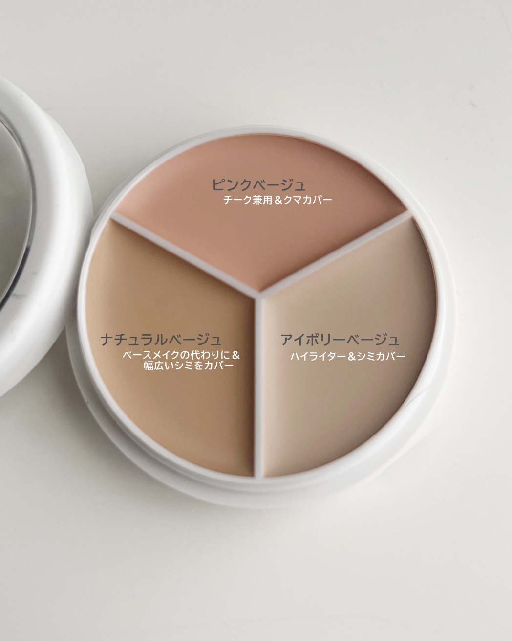 - クマからニキビ跡、シミまでこれ1つでカバー。 3色タイプだからこそ、気になるところや肌色を選ばずにご使用いただけます。 リキッドタイプを圧縮した高濃度バームのため高カバー高密着*¹を実現。 コンシーラーだけでなくコントアとしても使用可能です。 *1メーカー比