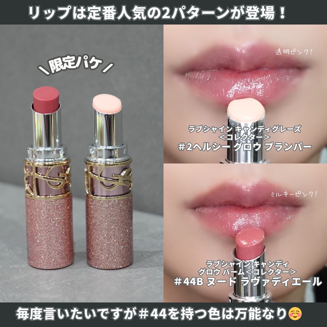 Diorらしい華やかなギランギラン系からヘルシーな艶系まで多様なラメが一つのパレットに濃縮🎨 ツヤ控えめなピンクやコーラルはチークっぽく使えるし、華やかなホワイトやブルーは華やかさがすんごい✨ ヘルシーも華やかも楽しめるし、カラー的にもこれは買ってよかった🥹