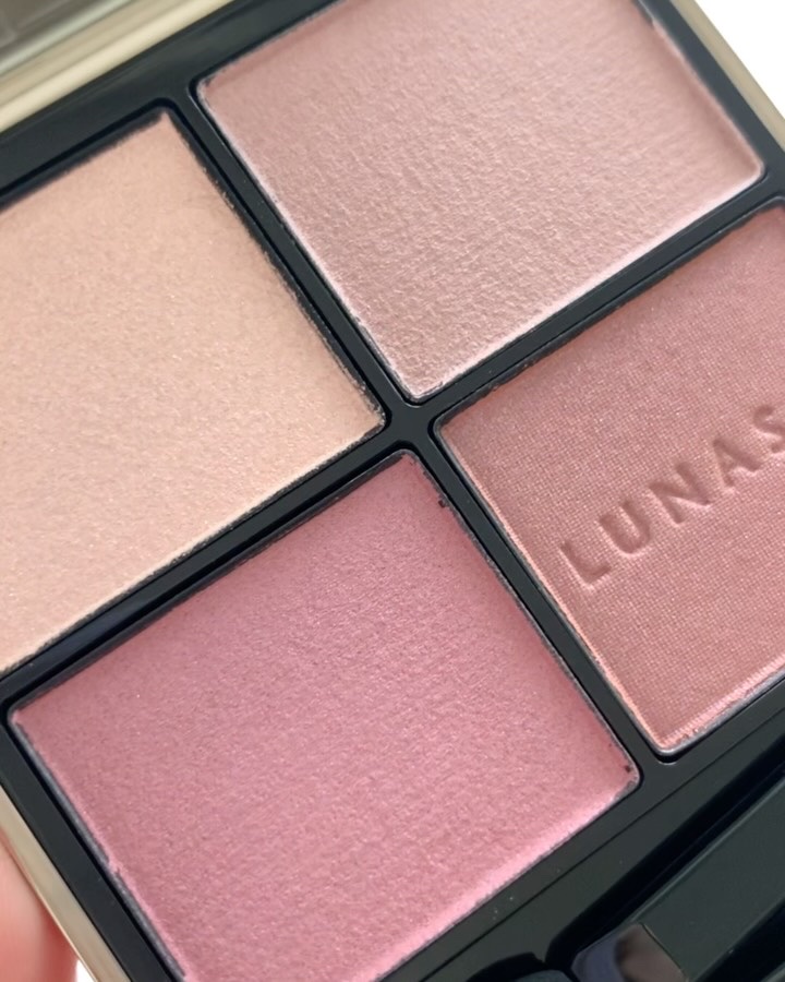 LUNASOLの冬コレで発売になったアイカラーレーションの限定色❣️ EX04は冷たく澄んだ空気に凍りつく薔薇のように凛としたフロステッドローズ🫰 透明感爆上げで目の下に乗せてもかわいい! パープルも締め色のブラウンも淡めのカラーで、組み合わせや乗せ方次第で色んなパターン楽しめます🥰 ルナソルはラメが本当に綺麗で好きすぎる! オンラインまだ在庫あったよ🌷