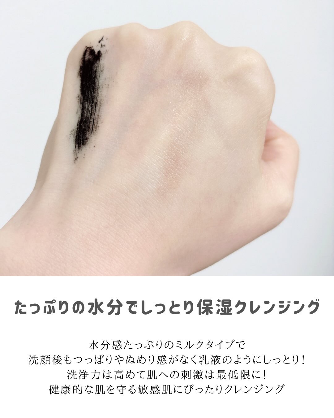 肌に優しいクレンジングミルク!乳化不要って聞いたけん、オイル?ミルク?どっち?ってなったんやけどオイルが配合されたミルククレンジングなんだって!ファンデ重ねとったり濃いアイライナーやったら、結構くるくるせんといかんけん、クレンジング力はめっち...