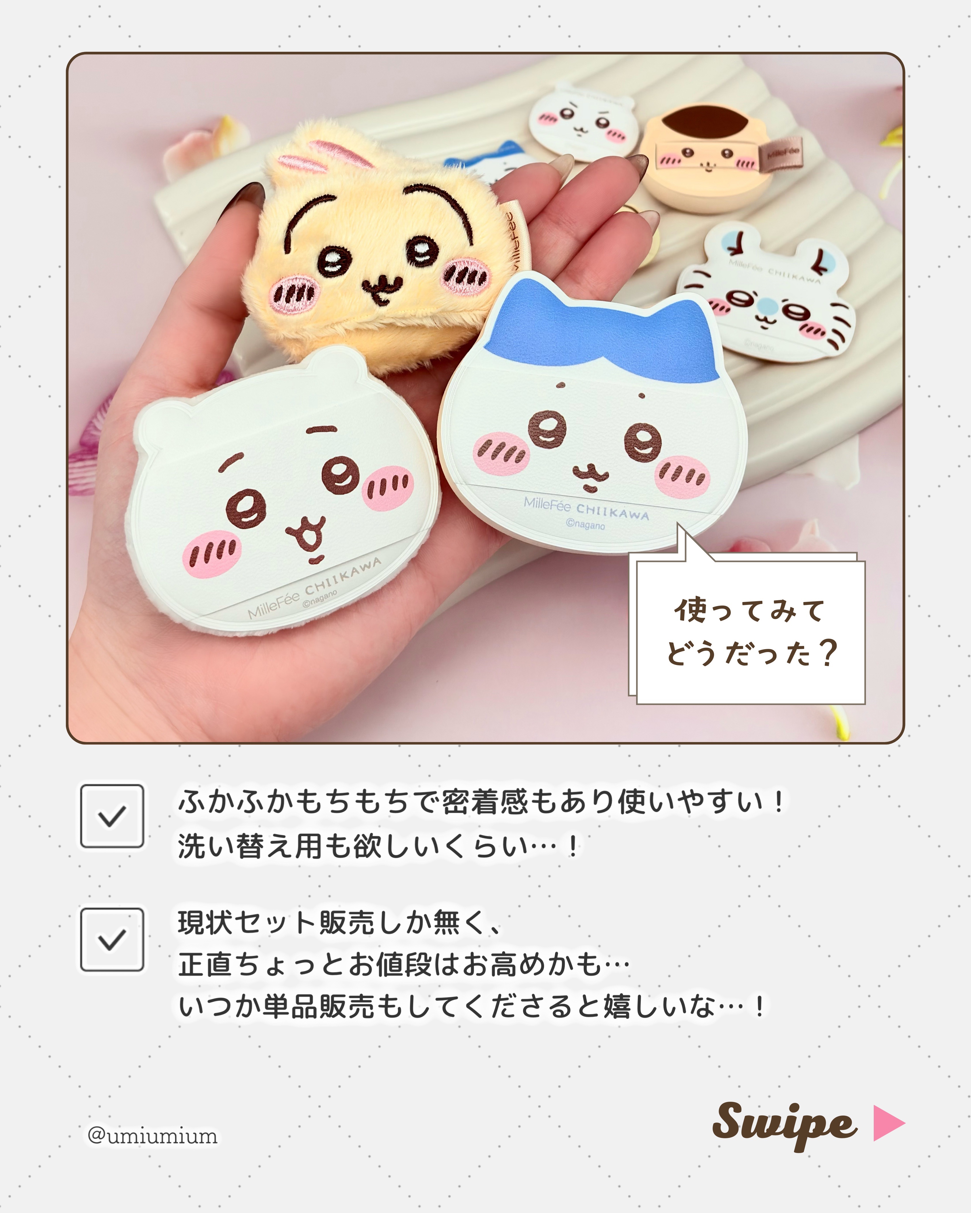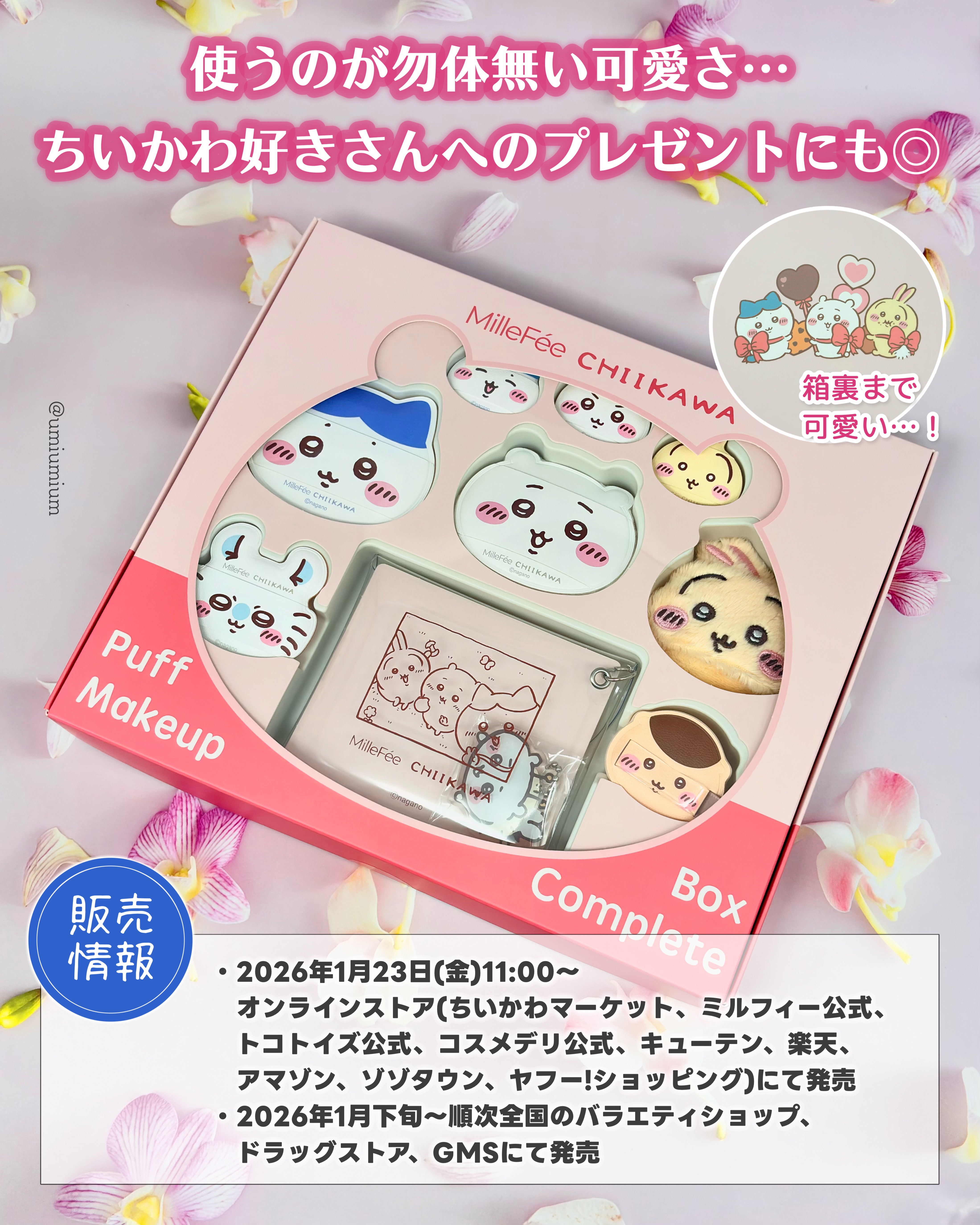 .MilleFéeの大人気パフシリーズからちいかわデザインが登場👏用途に合わせて選べる全8種のメイクパフセット✨️1月23日オンライン発売❤・ちいかわメイクパフコンプリートボックス#春の新作コスメ#新作コスメ#コスメ紹介#MilleFée#ち...