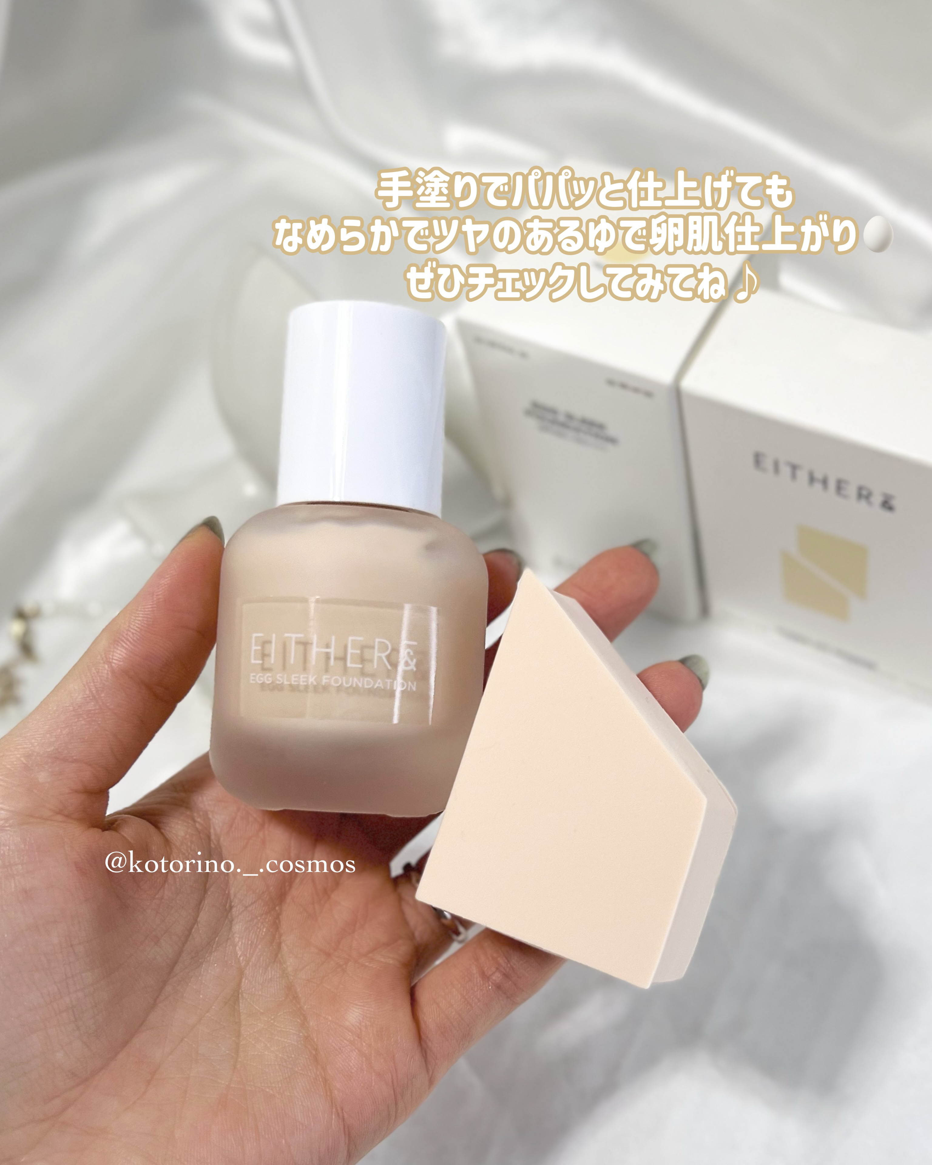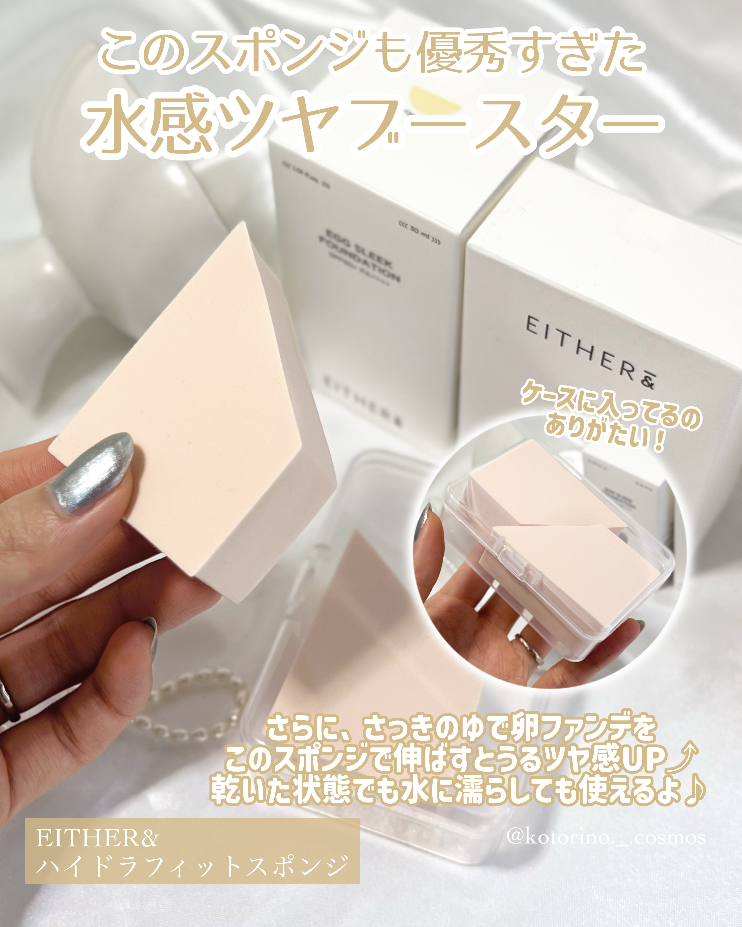 \まるでゆで卵のようなツヤ*肌🥚✨/EITHER&エッグスリックファンデーションハイドラフィットスポンジ今回はeither&の新作ファンデーション【エッグスリックファンデーション】を使ってみたよ🫶🏻SPF50+/PA++++58%水分エッセン...