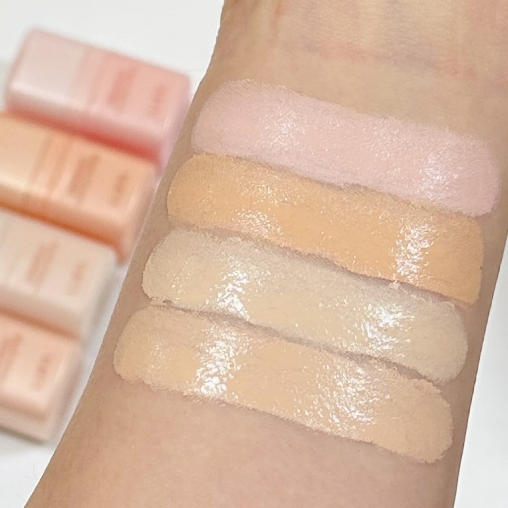 - <00 ピンクブライト> トリ(カプリル酸/カプリン酸)グリセリル、オクチルドデカノール、ヤシ油脂肪酸デシル、ダイマージリノール酸水添ヒマシ油、ポリブテン、合成ワックス、ヒマワリ種子ロウ、ラウリン酸ヘキシル、リンゴ種子油、イソステアリン酸ソルビタン、ポリヒドロキシステアリン酸、ツバキ種子油、シリカ、パルミチン酸エチルヘキシル、ミリスチン酸イソプロピル、イソステアリン酸、レシチン、ステアラルコニウムヘクトライト、ポリリシノレイン酸ポリグリセリル-3、香料、ジミリスチン酸Al、炭酸プロピレン、(ビニルジメチコン/メチコンシルセスキオキサン)クロスポリマー、カプリリルグリコール、カプリル酸グリセリル、加水分解ヒアルロン酸、マデカッソシド、ナイアシンアミド、PCA亜鉛、水、グリセリン、1,2-ヘキサンジオール、水溶性コラーゲン、酸化チタン、マイカ、酸化鉄 <01 サーモンベージュ> トリ(カプリル酸/カプリン酸)グリセリル、オクチルドデカノール、ヤシ油脂肪酸デシル、ダイマージリノール酸水添ヒマシ油、ポリブテン、合成ワックス、ヒマワリ種子ロウ、ラウリン酸ヘキシル、リンゴ種子油、イソステアリン酸ソルビタン、ポリヒドロキシステアリン酸、ツバキ種子油、シリカ、レシチン、パルミチン酸エチルヘキシル、ミリスチン酸イソプロピル、イソステアリン酸、ステアラルコニウムヘクトライト、ポリリシノレイン酸ポリグリセリル-3、香料、炭酸プロピレン、(ビニルジメチコン/メチコンシルセスキオキサン)クロスポリマー、ジミリスチン酸Al、カプリリルグリコール、カプリル酸グリセリル、加水分解ヒアルロン酸、マデカッソシド、ナイアシンアミド、PCA亜鉛、水、グリセリン、1,2-ヘキサンジオール、水溶性コラーゲン、酸化チタン、マイカ、酸化鉄 <02 アイボリー> トリ(カプリル酸/カプリン酸)グリセリル、オクチルドデカノール、ヤシ油脂肪酸デシル、ダイマージリノール酸水添ヒマシ油、ポリブテン、合成ワックス、ヒマワリ種子ロウ、ラウリン酸ヘキシル、リンゴ種子油、イソステアリン酸ソルビタン、ポリヒドロキシステアリン酸、ツバキ種子油、シリカ、レシチン、パルミチン酸エチルヘキシル、ミリスチン酸イソプロピル、イソステアリン酸、ステアラルコニウムヘクトライト、ポリリシノレイン酸ポリグリセリル-3、香料、ジミリスチン酸Al、炭酸プロピレン、(ビニルジメチコン/メチコンシルセスキオキサン)クロスポリマー、カプリリルグリコール、カプリル酸グリセリル、加水分解ヒアルロン酸、マデカッソシド、ナイアシンアミド、PCA亜鉛、水、グリセリン、1,2-ヘキサンジオール、水溶性コラーゲン、酸化チタン、マイカ、酸化鉄 <03 ポーセリン> トリ(カプリル酸/カプリン酸)グリセリル、オクチルドデカノール、ヤシ油脂肪酸デシル、ダイマージリノール酸水添ヒマシ油、ポリブテン、合成ワックス、ヒマワリ種子ロウ、ラウリン酸ヘキシル、リンゴ種子油、イソステアリン酸ソルビタン、ポリヒドロキシステアリン酸、ツバキ種子油、シリカ、レシチン、パルミチン酸エチルヘキシル、ミリスチン酸イソプロピル、イソステアリン酸、ステアラルコニウムヘクトライト、ポリリシノレイン酸ポリグリセリル-3、香料、ジミリスチン酸Al、炭酸プロピレン、(ビニルジメチコン/メチコンシルセスキオキサン)クロスポリマー、カプリリルグリコール、カプリル酸グリセリル、加水分解ヒアルロン酸、マデカッソシド、ナイアシンアミド、PCA亜鉛、水、グリセリン、1,2-ヘキサンジオール、水溶性コラーゲン、酸化チタン、マイカ、酸化鉄