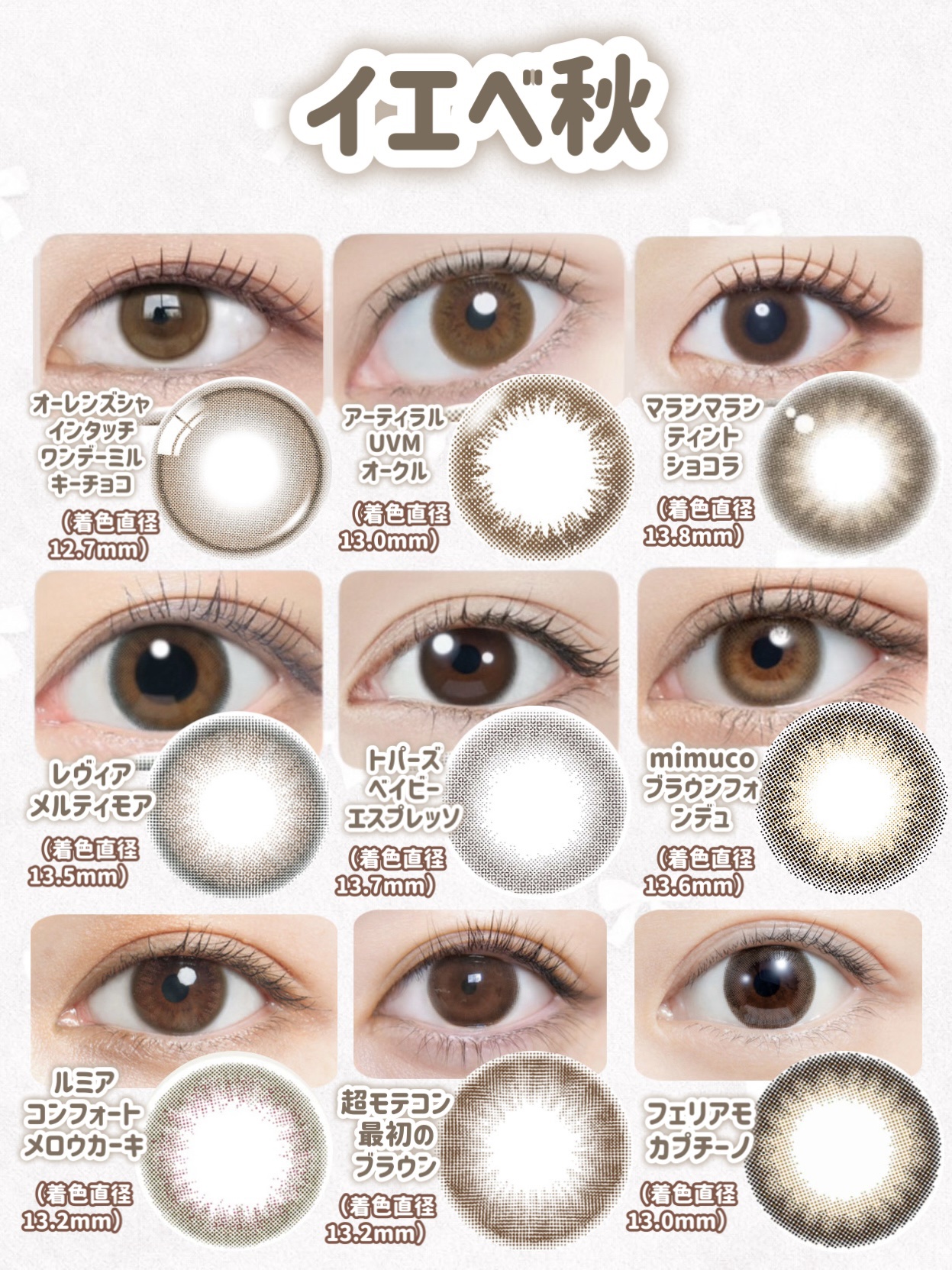 \パーソナルカラー別/ 人気のカラコン9種類を イエベ・ブルベ・ニュートラルに分けました🙌🏻 🤍カラコンの選び方 ✔️パーソナルカラーに合わせる イエベ春さん・・・フチあり×黄み ブルベ夏さん・・・フチなし×青み イエベ秋さん・・・フチなし...