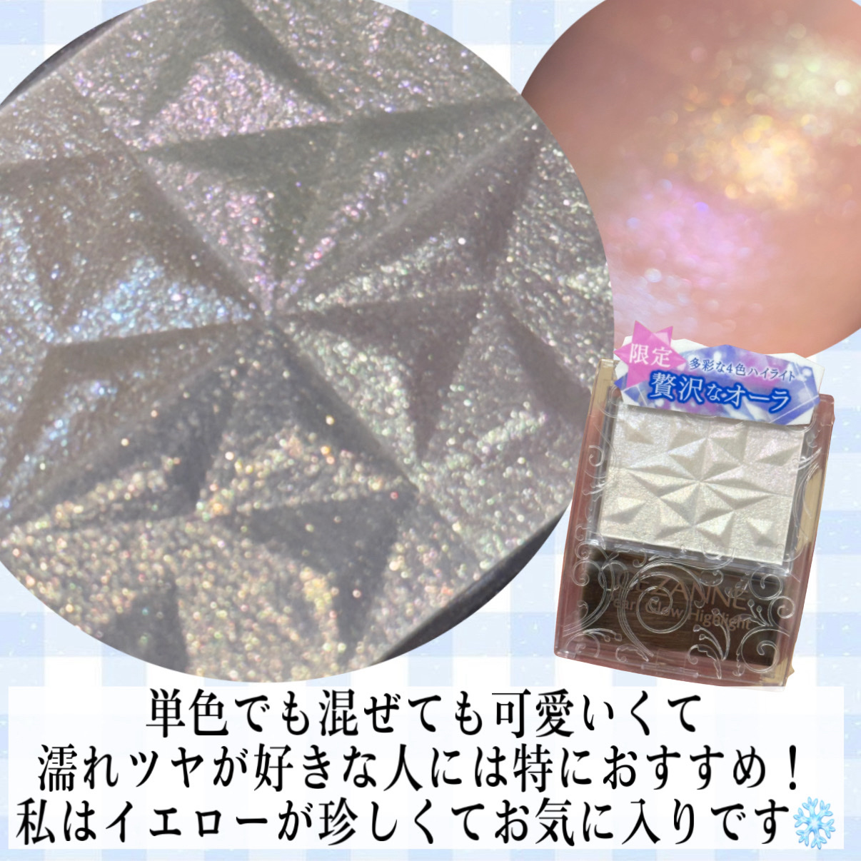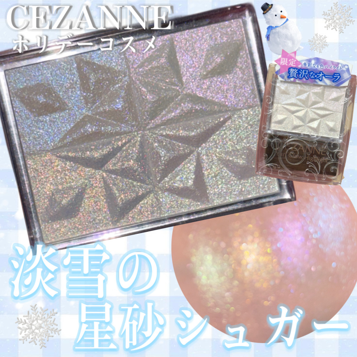大人気セザンヌハイライト🤍頬に初雪の輝き❄️︎︎⟡𝗖𝗘𝗭𝗔𝗡𝗡𝗘𝗣𝗲𝗮𝗹𝗚𝗹𝗼𝘄𝗛𝗶𝗴𝗵𝗹𝗶𝗴𝗵𝘁𝗦𝗣𝟯スノーファンタジー¥847買えてました♡一見真っ白なパウダーに見えますが透明感たっぷりな4色💛💚🩵🩷4色をミックスし肌に塗ると、スノー...
