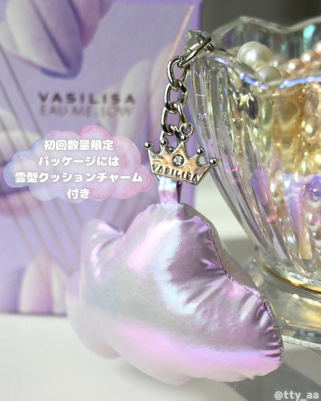 - 軽やかなパープルに包まれ、まっすぐな眼差しで“甘さと芯の強さ”を表現。 ふんわりマシュマロ香る新作「オー メロウ オードパルファム」が発売 キー香料は、ふんわり甘いマシュマロ。 ジューシーなピーチとブルーベリーに、バニラオーキッドがしなやかな芯を添えます。 フルーティな甘さがやわらかいマシュマロを感じさせる香りです。 ボトルデザインの基調となるのは、軽やかながらもどこか芯の強さや意思を感じさせるパープル。 「オー メロウ」のコンセプトである“内に秘めた、芯のある女性”を表現しています。 【初回数量限定パッケージ】 「オー メロウ」の発売を記念して、オリジナルチャーム付きの初回限定パッケージが登場。 パッケージには、雲のように浮かぶマシュマロを大胆にデザインしました。 付属のチャームは、キラキラとした雲型クッションに、VASILISA の刻印入り“女王の王冠”を添えた特別仕様です。 ※数量限定、なくなり次第終了 <40mL> 1月17日(土) 全国のバラエティショップ、ディスカウントストア等 オンラインストア「FITS you. STORE」 https://store.fits-japan.com/shop、楽天市場、Qoo10 等 <8mL> 1月17日(土) 全国のロフト、PLAZA、アインズ&トルペ(※一部店舗を除く) オンラインストア「FITS you. STORE」 https://store.fits-japan.com/shop 等 2月28日(土) 全国のバラエティショップ、ディスカウントストア等 一般発売に先立ち、1月7日(水)より@cosmeTOKYO 特設売り場にて先行発売を行うほか、FITS ONLINE STORE 楽天市場店にて先行予約を開始いたします。