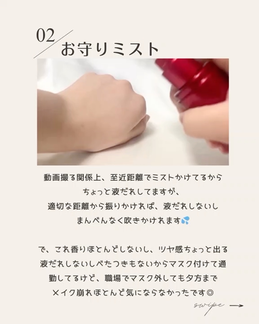 | フィックスミストランキング第10位 | マスクをすると本当に崩れないです……!特に摩擦に対しての崩れにかなり強くなります!!✨ | 詳細を見る |