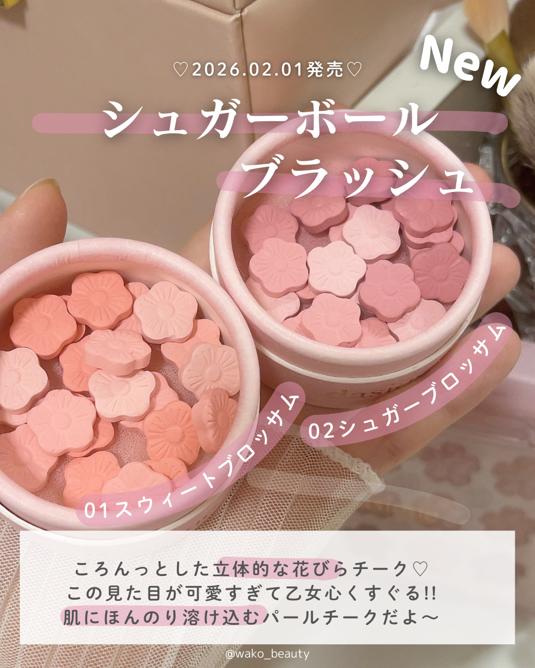 \新作ポンポンチーク…!!!!🌸🎀/dasiqueのシュガーボールブラッシュ爆誕🫧୨୧୨୧𓊆ㅤdasique𓊇シュガーボールブラッシュ𝜗𝜚スウィートブロッサム華やかで生き生きとしたコーラル桜ピンク🌸シュガーブロッサムふんわり愛らしいライトな桜...