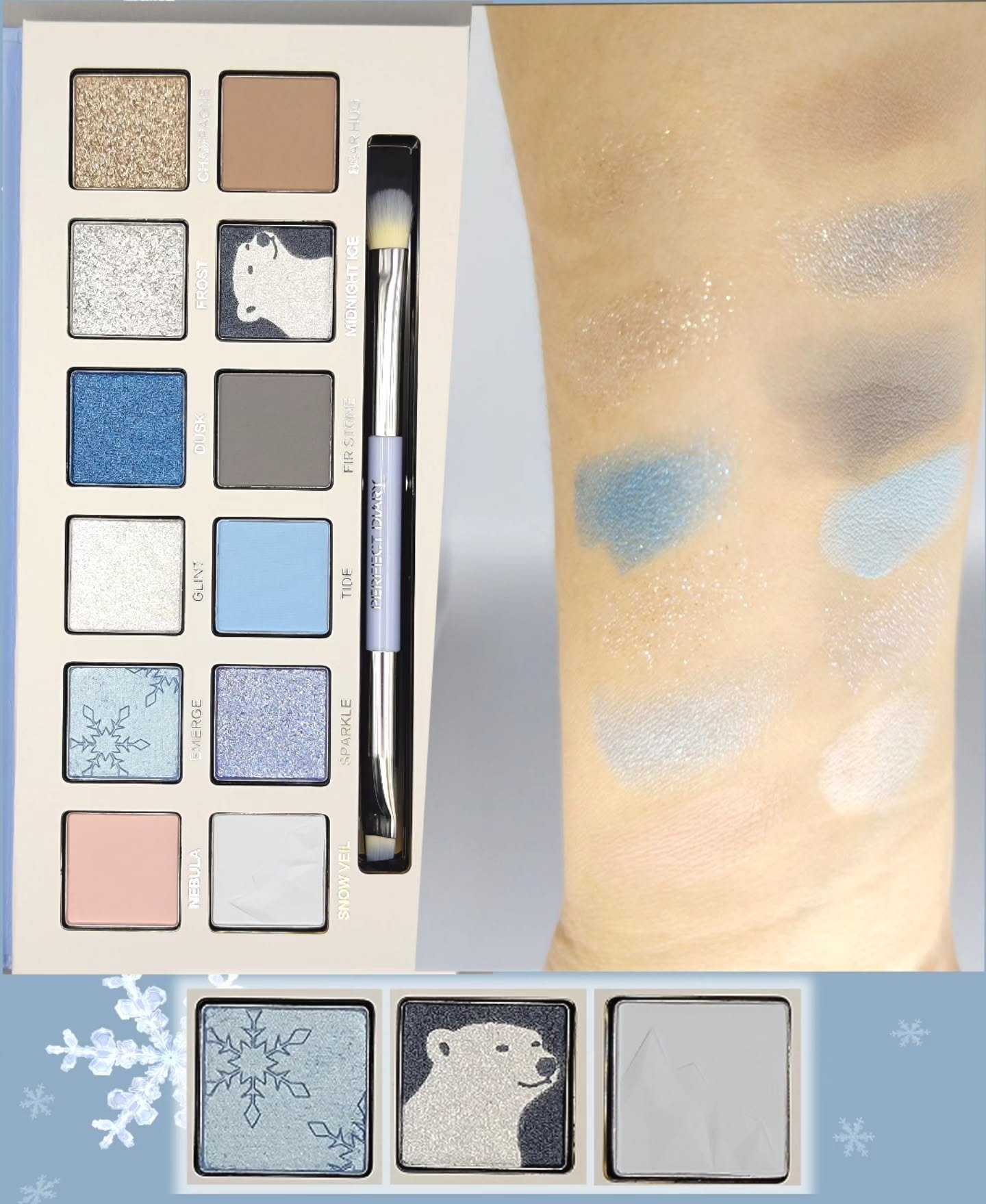 PERFECTDIARY🐻❄️💎□北極の光を閉じ込めたアイパレットエクスプローラ12色アイシャドウ23ベアハグ□ひと塗りで艶めくふっくら唇バイオリップエッセンスリップスティック733-PerfectDiaryChristmasSer...